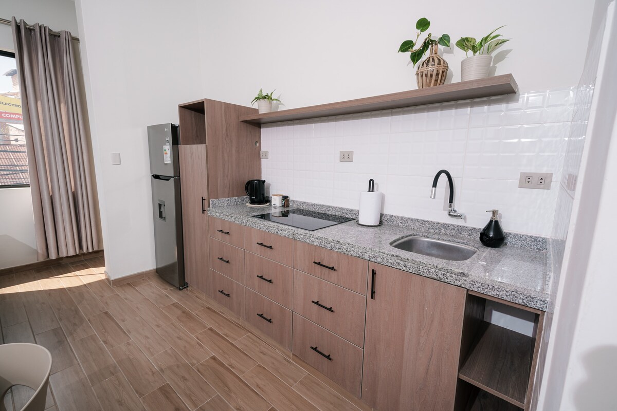 Διαμέρισμα DE ESTRENO στο κέντρο της πόλης, ιδανικό για μια άνετη και ασφαλή διαμονή. Βρίσκεται μόλις τρία τετράγωνα από την πλατεία Plaza de Armas του Tarapoto και πολύ κοντά στα καλύτερα εστιατόρια, σούπερ μάρκετ και φαρμακεία. Το διαμέρισμα διαθέτει Wi-Fi, Smart TV, εξοπλισμένη κουζίνα, ζεστό και κρύο νερό και δωμάτιο με κλιματισμό. Η άφιξη είναι αυτόνομη με κωδικό ασφαλείας. Το διαμέρισμα βρίσκεται στον δεύτερο όροφο και η πρόσβαση γίνεται με σκάλες.