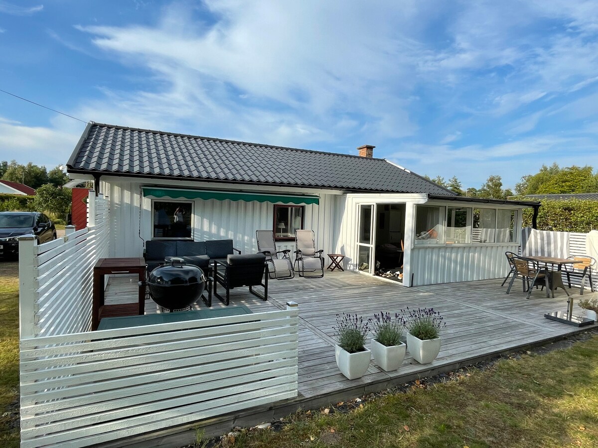 Mysigt gästhus nära havet.
