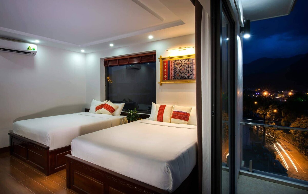Αυτό είναι ένα πολυτελές οικογενειακό δωμάτιο μέσα σε ένα ξενοδοχείο 3 αστέρων που βρίσκεται ακριβώς στην πόλη Sapa. Βρίσκεται σε ιδανική τοποθεσία στην ήσυχη περιοχή του κέντρου της Sapa, μόλις λίγα λεπτά από την εκκλησία Sapa και την τοπική αγορά με τα πόδια. Όλα τα δωμάτια έχουν μεγάλο παράθυρο και μπαλκόνι. Προσφέρει υπέροχη θέα στη λίμνη, το Ham Rong και το βουνό Fanxipan. Ευρύχωρο οικογενειακό δωμάτιο με 2 διπλά κρεβάτια μπορεί να φιλοξενήσει έως 5 άτομα (επιπλέον κρεβάτι κατόπιν αιτήματος), κατάλληλο για οικογένεια ή ομάδα. Ο μπουφές πρωινού σερβίρεται στο εστιατόριο, συμπεριλαμβάνεται τιμή δωματίου