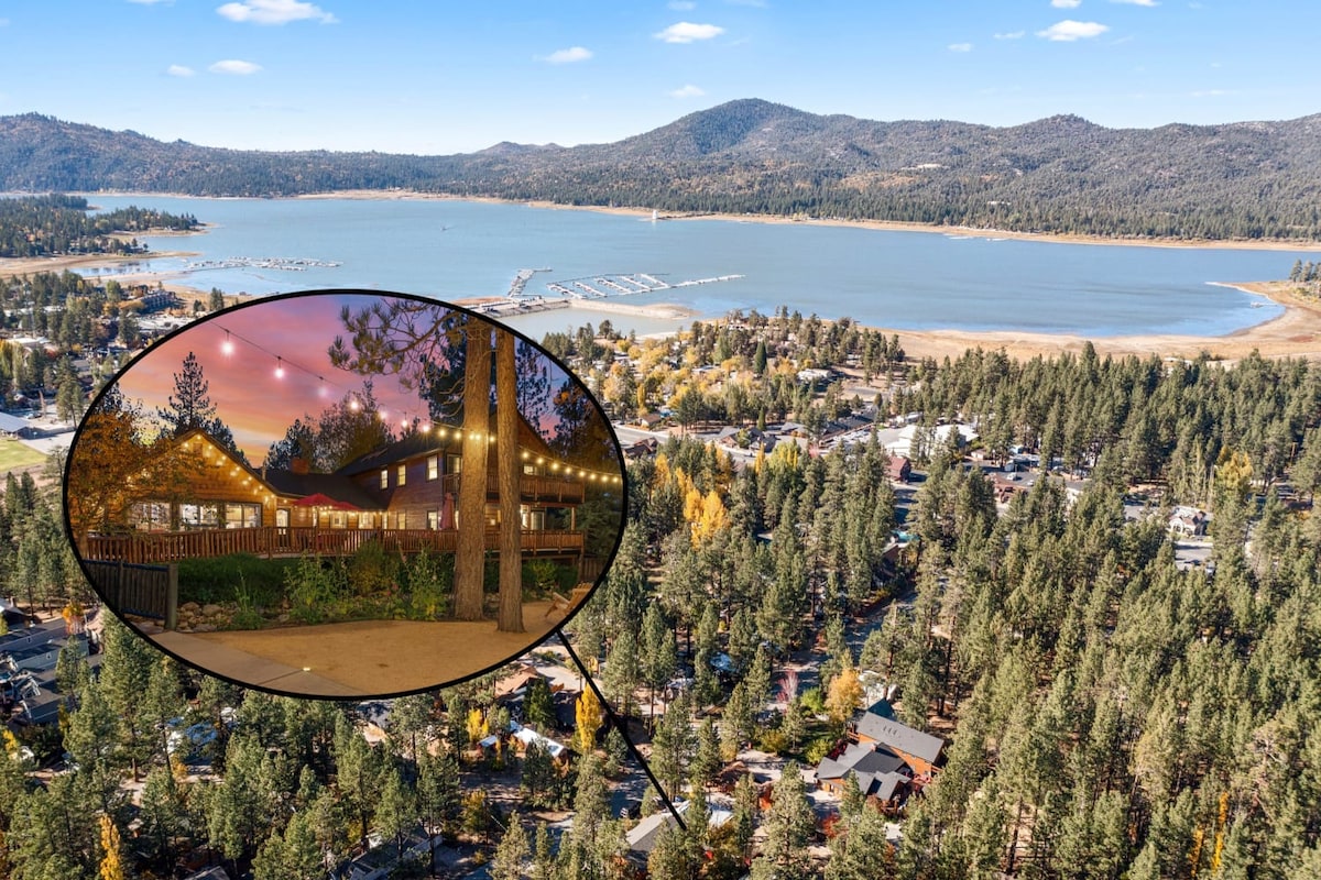 Boulder Baycation! This stunning lakefront retreat near Boulder Bay, with private dock access and beautiful water views. Relax in the hot tub, enjoy movie nights in the home theater, or have fun in the game room with foosball, air hockey, and cornhole. With 6 bedrooms, room for 16 guests, a fully equipped kitchen, fireplace, and easy access to The Village, ski resorts, and hiking, this home is perfect for making Big Bear memories.