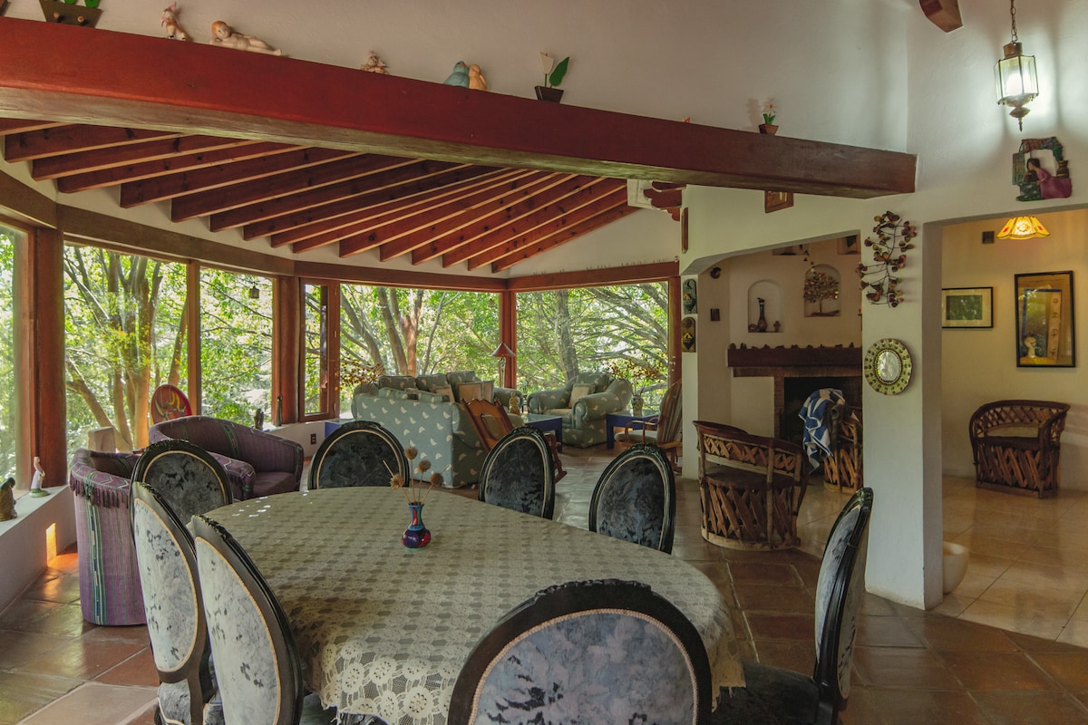 Ευρύχωρο ρουστίκ σπίτι με 4 υπνοδωμάτια, δωμάτιο τηλεόρασης, σαλόνι, τραπεζαρία, βεράντα με τζάκι, κουζίνα και μεγάλο κήπο με φερμουάρ. Περιλαμβάνονται ο μάγειρας και η καθαριότητα. Απέχει 5 λεπτά από το ράντσο Avandaro, 20 λεπτά από την πόλη Valle de Bravo και 15 λεπτά από το κέντρο του Avándaro.