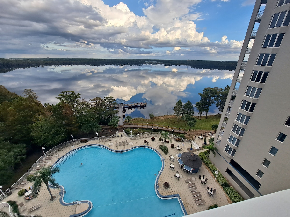 Καλώς ήρθατε σε αυτό το πολυτελές παραθαλάσσιο διαμέρισμα στον ουρανό με θέα τη λίμνη Bryan και τα πάρκα της Disney σε εντυπωσιακό ύψος 210 ποδιών πάνω από το επίπεδο του εδάφους. Απολαύστε θεαματικές ανατολές ηλίου από το ιδιωτικό μας μπαλκόνι ή παρακολουθήστε το βραδινό σόου με πυροτεχνήματα στη μπροστινή βεράντα. Τα Universal Studios, το Sea-World, το Legoland, τα υπέροχα καταστήματα στο Disney Springs και τα ατελείωτα εστιατόρια είναι όλα τόσο κοντά! Πλήρης πρόσβαση στο θέρετρο χωρίς κρυφές χρεώσεις. Δωρεάν χώρος στάθμευσης, πισίνα, υδρομασάζ, γυμναστήριο, αίθουσα παιχνιδιών, πεζόδρομος για προστασία της φύσης, μπανιέρα με πίδακα και πολλά άλλα!
