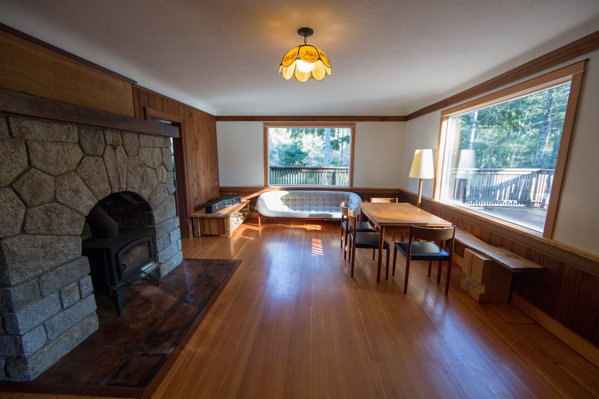 Η πιο μαγική, εκπληκτική και λογική τοποθεσία Airbnb στην παραλία στην κοιλάδα Cowichan... η διαθεσιμότητα κρατήσεων είναι πολύ περιορισμένη, γι' αυτό κάντε κράτηση νωρίς! Αυτή η εξαιρετική τοποθεσία, που βρίσκεται ακριβώς πάνω στο νερό, στους μυστικιστικούς πρόποδες του όρους Tzouhalem, στον κόλπο Cowichan, διαθέτει ένα άνετο παλιό (αλλά υγιές!) ρουστίκ εξοχικό παραθαλάσσιο κατάλυμα. Διαλογιστείτε και επικοινωνήστε με τους κύκνους, τις ενυδρίδες, τον σολομό, τον ερωδιό, τα θαλάσσια λιοντάρια και την περιστασιακή φάλαινα ή φώκια.