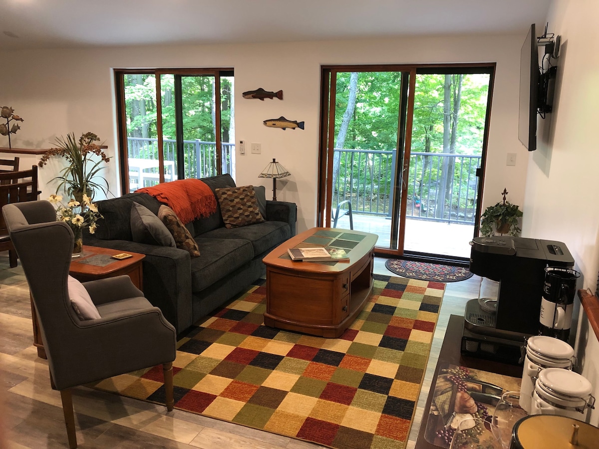 Καλώς ήρθατε στο Forest Retreat! Βρισκόμαστε στους λόφους της δυτικής Νέας Υόρκης, 23 μίλια από τη λίμνη Chautauqua και 14 μίλια από τη Lily Dale. Αυτό το μοναδικό κατάλυμα βρίσκεται κοντά σε αρκετούς χώρους γάμου και στο μονοπάτι Earl Cardot Overland, το οποίο περιβάλλεται από 2.300 στρέμματα κρατικού δάσους. Βρισκόμαστε ανάμεσα σε 2 τοπικά χιονοδρομικά κέντρα και μόνο 87 μίλια νότια του πάρκου Niagara Falls State. Χαλαρώστε δίπλα στη φωτιά, κάντε καγιάκ ή ψαρέψτε στη λίμνη των 2 στρεμμάτων και απλά απολαύστε το τοπίο. Χρειαζόμαστε μια υπογεγραμμένη παραίτηση για να χρησιμοποιήσουμε τη λίμνη.