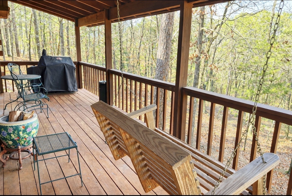 Come relax on the front porch of my beautiful cabin, very secluded listening to the whippoorwills and listening to the creek bubbling . This beautiful cabin sits on 60 acres and private. Beautiful swimming hole that you can enjoy with good fishing or just floating along relaxing in the sun. It's surrounded by beautiful mountains and just a few steps to enjoy the south fork of the caddo. You will have a fire pit and charcoal grill. I believe you will not be disappointed.