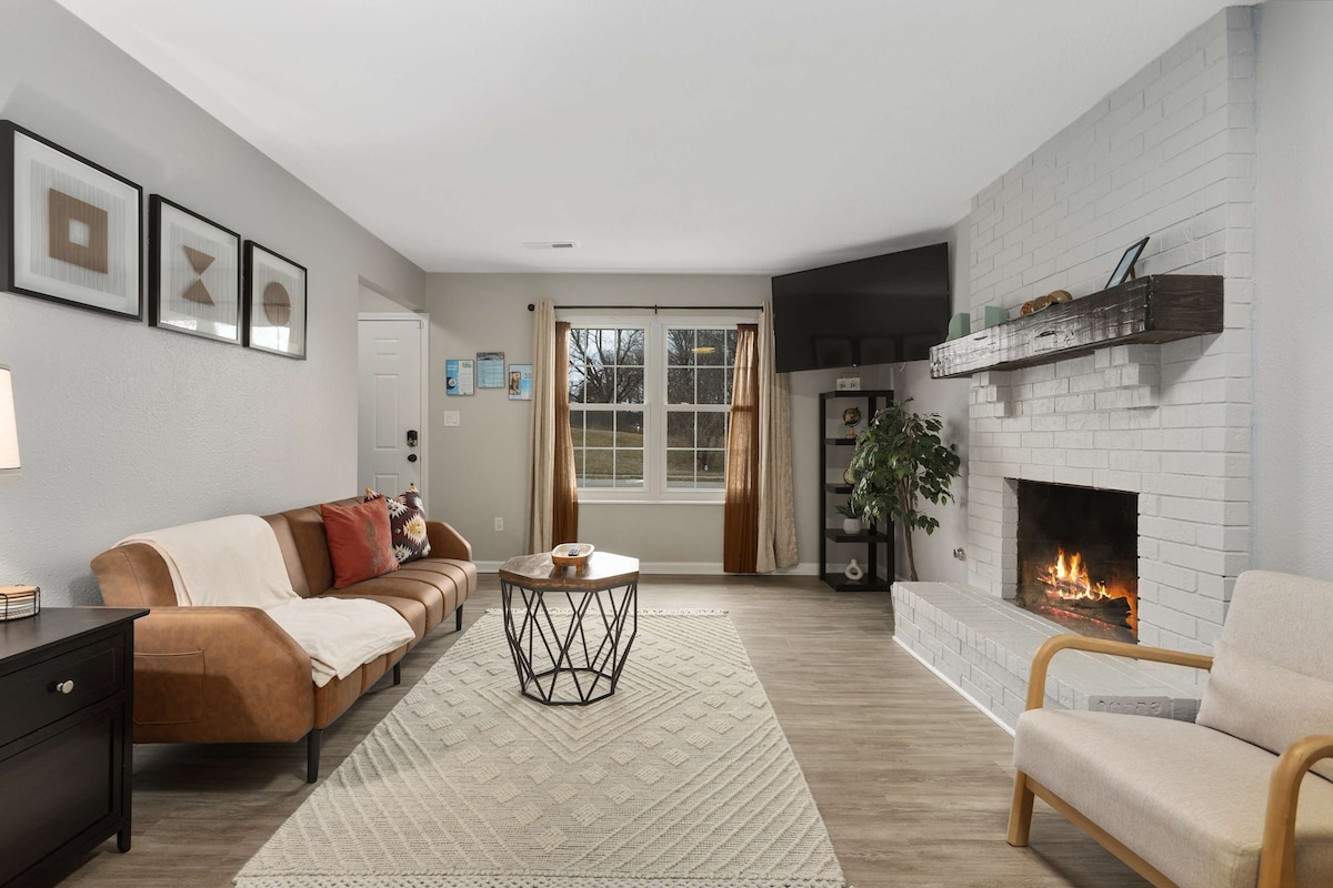 In downtown Lees Summit, our 2-bed, 1-bath Airbnb blends modern design with historic charm. Luxurious king-size bed in the master, a twin trundle bed in the guest room with dedicated workspace. Stylish bathroom with modern fixtures. Perfectly located for dining, shopping, and entertainment. Cozy living space, well-equipped kitchen. Fast WiFi. Your ideal home away from home in vibrant downtown. Just a short drive to Arrowhead / GEHA Field! Book now for an unforgettable Lee’s Summit adventure!