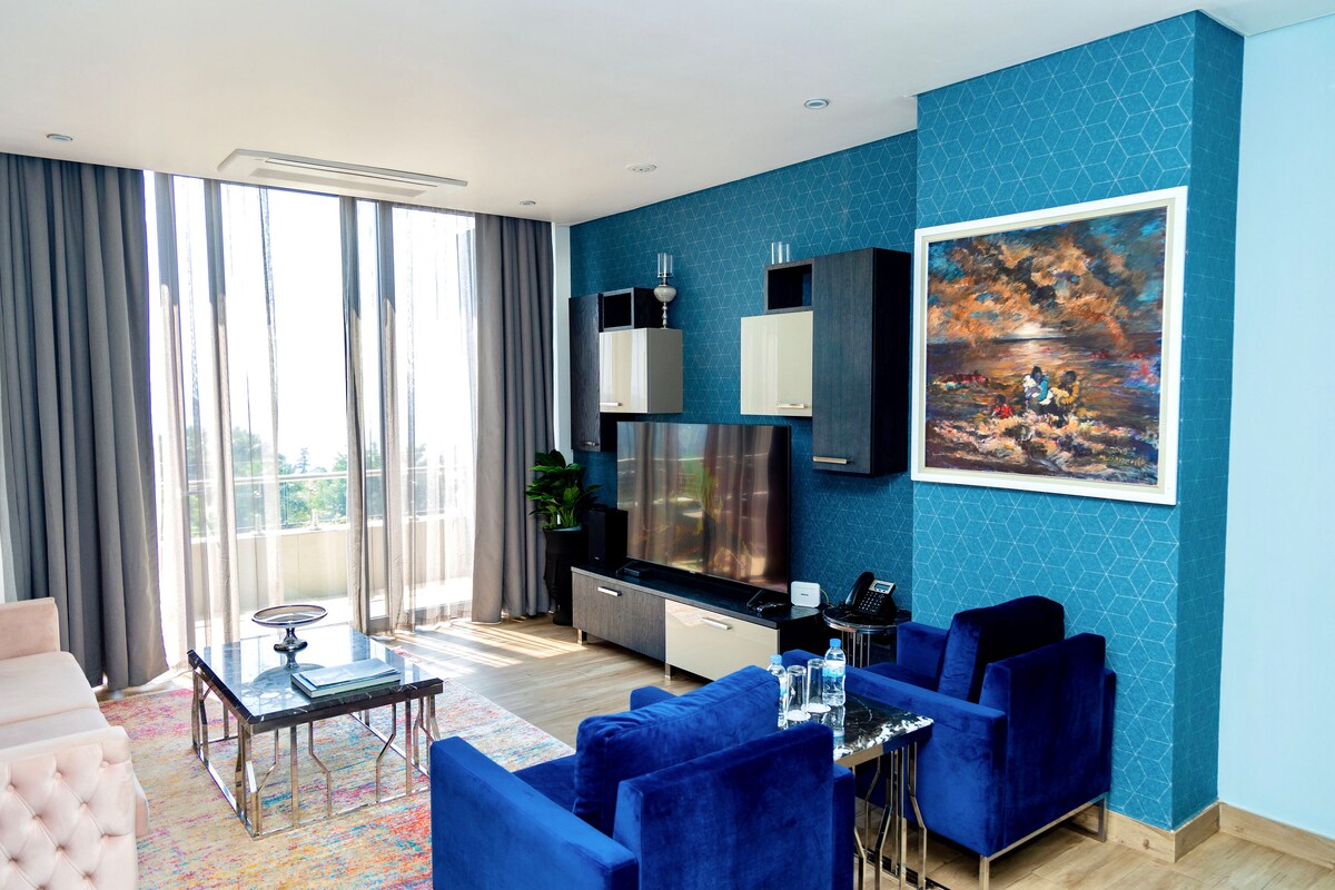 Ένα μοντέρνο διαμέρισμα 2 υπνοδωματίων με εκπληκτική θέα στο Γήπεδο Γκολφ Κιγκάλι και την πόλη. Στην καρδιά του Κιγκάλι, απέχουμε 15 λεπτά από το αεροδρόμιο και μόλις 9 λεπτά από το The Kigali Business Center, το Kigali Heights και το Συνεδριακό Κέντρο. Το διαμέρισμα διαθέτει όλα τα υπνοδωμάτια με τουαλέτα επισκεπτών, δωμάτιο πλυντηρίου, κουζίνα και σαλόνι με τραπεζαρία. Απολαύστε τα κλιματιζόμενα δωμάτια και το WiFi υψηλής ταχύτητας.
