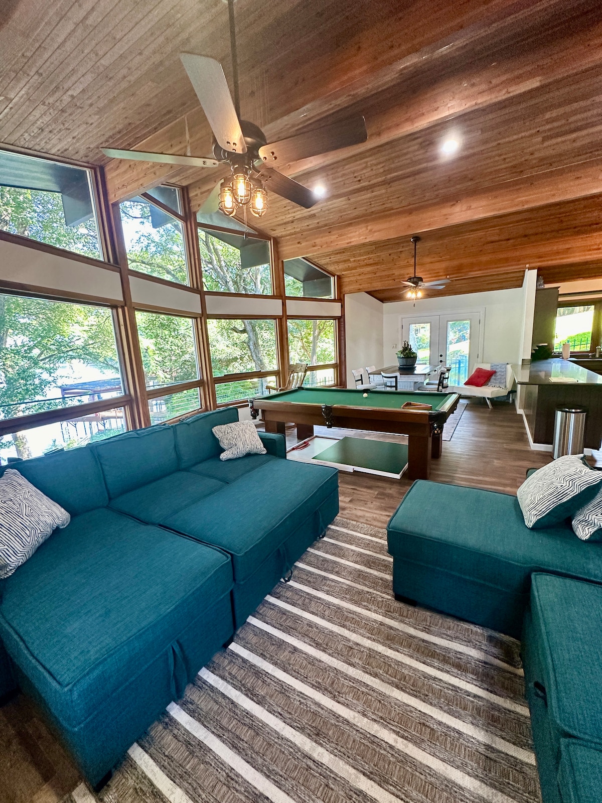 Pull up a rocking chair on the expansive wrap-around deck & enjoy the astonishing views of Canyon Lake in this amazing 2-story vacation getaway. Boasting 3 kings and 1 queen bed, an open kitchen, dinning and living room, plenty of parking for you and your family/friends, a mesh-networked high-speed wifi, and TVs upstairs and down with access to your favorite streaming services, this is the perfect place to rest your head when you're not out on the lake. NO PARTIES OR EVENTS.