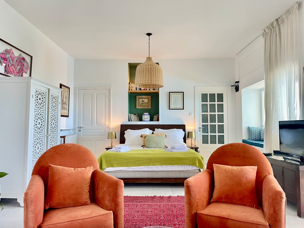 Ένα κομψό φωτεινό διαμέρισμα 3 υπνοδωματίων που διατηρείται σε υψηλά πρότυπα, τρία υπνοδωμάτια και τρία μπάνια σε μια μοντέρνα φυλασσόμενη κατοικία σε μια από τις καλύτερες γειτονιές της Τύνιδας. Θα ταίριαζε απόλυτα σε μια οικογένεια ή σε επαγγελματίες επισκέπτες, το διαμέρισμα μπορεί να φιλοξενήσει έως 8 άτομα (6 ενήλικες και 2 παιδιά). Τα διαμερίσματα είναι διακοσμημένα με αυθεντικές βίντατζ αφίσες ταινιών από τη δική μου συλλογή με κινηματογράφο από την Τυνησία, την Αίγυπτο, τον Λίβανο και τη Συρία που χρονολογούνται από τις αρχές της δεκαετίας του 1930.