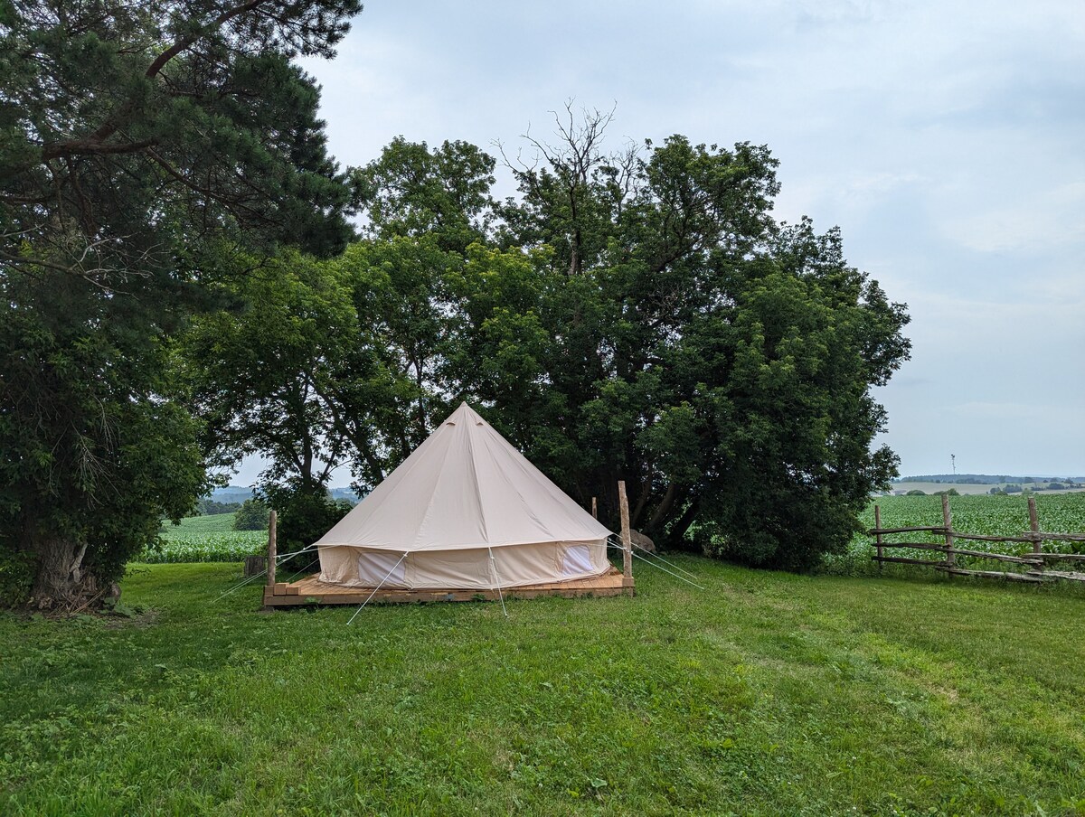 Απολαύστε μια απλή απόδραση σε κατασκήνωση που περιβάλλεται από δάση, κυματιστούς λόφους και γραφικές καλλιεργήσιμες εκτάσεις. Η μεγάλη πολυτελής σκηνή μας από καραβόπανο - με μια ζεστή ξύλινη σόμπα - βρίσκεται ανάμεσα στα δέντρα και συνορεύει με εκατοντάδες όμορφα στρέμματα χωραφιών, δέντρων, μονοπατιών και ρυακιών. Η σκηνή μπορεί να φιλοξενήσει 6 άτομα και είναι ιδανική για οικογενειακές διακοπές ή ρομαντική απόδραση. Είμαστε κοντά στο Letchworth State Park, στο Darien Lake Six Flags, σε πολλές γραφικές πόλεις της υπαίθρου και μόνο 45 λεπτά απόσταση από το Μπάφαλο ή το Ρότσεστερ.