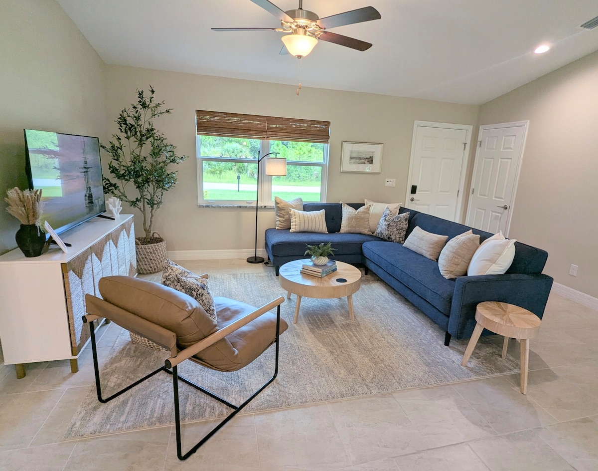 Less than 30 Minutes away to the ballpark for #Rays and #Braves spring training! Our vacation home is a peaceful oasis, perfect for rest and relaxation in one of the most sought-after neighborhoods in Port Charlotte! Enjoy a relaxing stay in this modern and stylish vacation home which offers the following list of amenities: Wi-Fi, TV Streaming, heated pool, putting green, screened in lanai, beach accessories, equipped kitchen, outdoor grilling space, luxurious king beds and private backyard.