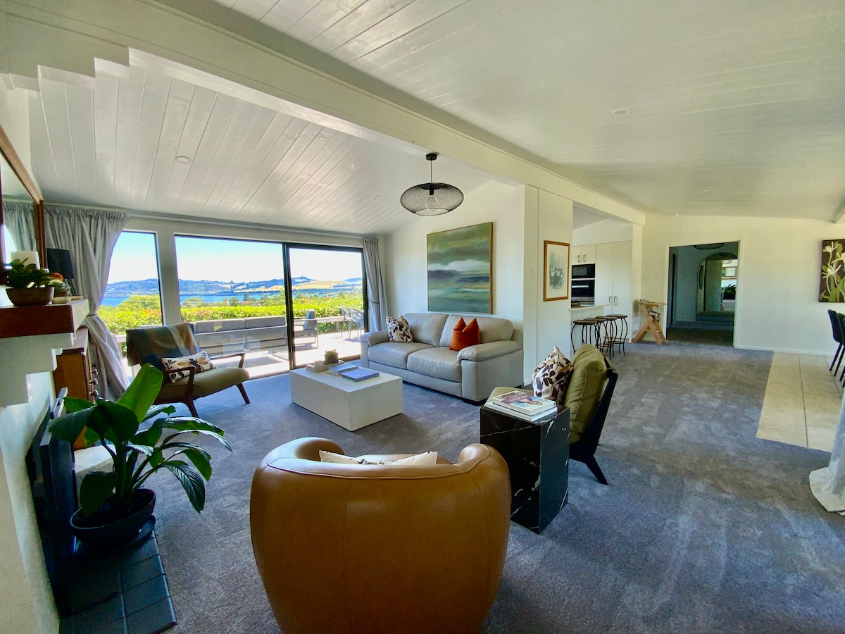 Απολαύστε πολυτελή κρεβάτια και ευρύχωρο σαλόνι ανοιχτού τύπου. Πέντε λεπτά από τη λίμνη με εκτεταμένη θέα στη λίμνη και πανέμορφα ηλιοβασιλέματα. Μια ήρεμη βόλτα 30 λεπτών κατά μήκος της όχθης της λίμνης προς την υπέροχη πόλη Taupo, προσφέρει ψώνια σε μπουτίκ, καφετέριες, μπαρ και εστιατόρια. Το σπίτι διαθέτει δύο μεγάλες βεράντες για καλοκαιρινή χαλάρωση και 2 αντλίες θερμότητας για χειμωνιάτικη ζεστασιά. Μια πισίνα που μπορείτε να γεμίσετε με φυσικό θερμαινόμενο νερό βρίσκεται στην ιδιωτική πίσω βεράντα για να την απολαμβάνετε όλο τον χρόνο.