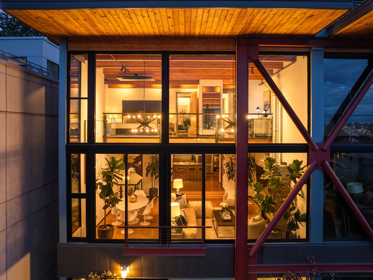Αυτό το κτίριο είναι ξεχωριστό. Βρίσκονται πάνω από ένα στούντιο τέχνης αφιερωμένο σε έργα τέχνης μεγάλης κλίμακας και υποστηρίζουν την αποστολή της Mad Art. Μία από τις δέκα σοφίτες 2 ορόφων, διαθέτει 750 τετραγωνικά πόδια (70 τετραγωνικά μέτρα), καθώς και μια βεράντα και πρόσβαση σε μια κοινόχρηστη ταράτσα με μπάρμπεκιου. Αυτή η πολυτελής σοφίτα που σχεδιάστηκε από τον Graham Baba είναι ένα έργο τέχνης. Γυαλισμένα τσιμεντένια πατώματα σε όλο το κατάλυμα, ντουλάπια και εντοιχισμένα έπιπλα από ξύλο καρυδιάς, μαύρες λεπτομέρειες τοίχου από ατσάλι, εκτεθειμένη ατσάλινη κατασκευή, οροφή από φυσικό έλατο και εξαιρετικά εξαρτήματα μπάνιου και κουζίνας εκφράζουν μια παλέτα υλικών που είναι χαρακτηριστική της βορειοδυτικής περιοχής. WiFi σε όλο το κατάλυμα που εξυπηρετεί ταχύτητες ίντερνετ WaveG 1GB και 4k TV με Amazon Fire TV. Έχετε τον έλεγχο του χώρου! Υπάρχουν πολλές ανοιχτές ντουλάπες που μπορείτε να χρησιμοποιήσετε. Πάντα ξεπακετάρουμε εντελώς όταν ταξιδεύουμε και σας προτείνουμε να το κάνετε! Το South Lake Union (SLU) είναι το κέντρο των βιομηχανιών τεχνολογίας και βιοτεχνολογίας του Σιάτλ κατά τη διάρκεια της ημέρας. Απολαύστε ένα χαλαρό βράδυ σε ένα υπέροχο μπουτίκ εστιατόριο ή μπαρ. Είναι προσβάσιμο προς όλες τις κατευθύνσεις στους υπέροχους προορισμούς του Σιάτλ, συμπεριλαμβανομένου του Space Needle. Το τραμ SLU Seattle Streetcar (εισερχόμενο) σταματά ακριβώς μπροστά από το κτίριο. Επιβιβαστείτε και συνδεθείτε με το Link Light Rail μέχρι το αεροδρόμιο ή πάρτε ένα λεωφορείο για το Capitol Hill, το Ballard ή το Queen Anne. Το South Lake Union είναι μια εστία κατασκευαστικής δραστηριότητας και παρόλο που δεν συμβαίνει τίποτα αυτή τη στιγμή δίπλα στο κτίριο, η περιοχή είναι ζωντανή με εργαζόμενους κατά τη διάρκεια της ημέρας. Τα βράδια είναι ήσυχα και χαλαρωτικά.