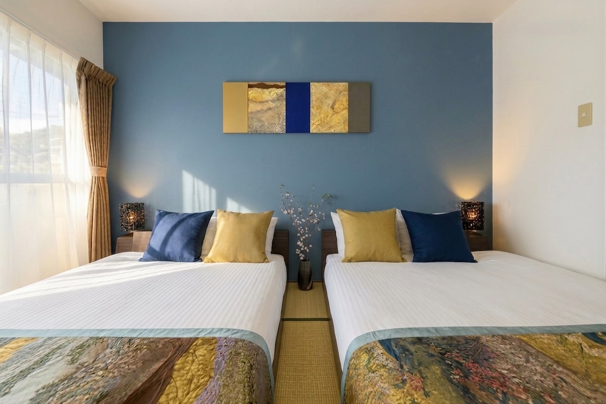 Γεια, είμαι ο Μίκυ ☀️ Αυτό το κατάλυμα τύπου διαμερίσματος απέχει 10 λεπτά με τα πόδια από τον σταθμό Kawaguchiko. Η θέα του όρους Fuji από τον δεύτερο όροφο του διαμερίσματος είναι πολύ όμορφη και είναι ένα εξαιρετικό μέρος για να τραβήξετε φωτογραφίες☺ ️ Το παντοπωλείο απέχει 3 λεπτά με τα πόδια. Βρίσκεται σε πολύ καλή τοποθεσία, μία στάση από το Fuji-Q Highland, ένα πάρκο αναψυχής. Το δωμάτιο ήταν η προσοχή μου και το δωμάτιο σε ιαπωνικό στιλ είχε ταπετσαρία με σχέδιο κερασιάς μέχρι το ταβάνι.Επιπλέον, η χρυσή ταπετσαρία λάμπει στο παραδοσιακό ιαπωνικό μοτίβο και το φως είναι επίσης πολύ όμορφη.Υπάρχουν επίσης διακοσμητικά, όπως καρέκλες και μπονσάι που χρησιμοποιούν χαλάκια τατάμι, ώστε να μπορείτε να απολαύσετε πλήρως τον ιαπωνικό [ιαπωνικό] χώρο. Το δωμάτιο μπορεί να φιλοξενήσει έως και 4 άτομα. Έχουμε επίσης παιδικά πιάτα και μαξιλάρια. Το κρεβάτι έχει πολύ μεγάλο μέγεθος 2 μέτρα (2 άτομα) και μπορείτε να κοιμηθείτε με ένα φουτόν σε ένα χαλάκι τατάμι (1 άτομο).Ένας ακόμα πιο κομψός καναπές μπορεί να μετατραπεί σε κρεβάτι. Απολαύστε πλήρως το εσωτερικό που είναι γεμάτο με τη γοητεία της Ιαπωνίας και του Όρους Fuji, το οποίο μπορεί να υπερηφανεύεται για την Ιαπωνία! Ευχαριστώ * Μετά την κράτηση, θα σας δείξουμε το ιδιωτικό ντους.Πρέπει επίσης να πάτε στο ντους μόλις βγείτε από το δωμάτιο και να μετακινηθείτε στο επόμενο δωμάτιο.Περνάει από έναν μικρό κοινόχρηστο διάδρομο, αλλά μπορείτε να είστε σίγουρος/η ότι σπάνια συναντάτε άλλους επισκέπτες
