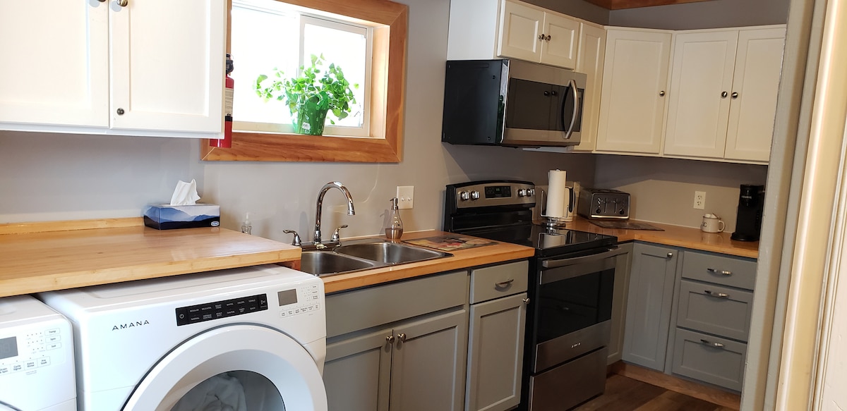 Ανακαινισμένο εξοχικό με σοφίτα 1 υπνοδωματίου στις όχθες του ποταμού Σάλμον. Αυτό το ακίνητο δίπλα στη θάλασσα είναι ιδανικό για όσους αναζητούν ηρεμία και γαλήνη ενώ περιβάλλονται από τη φύση, αλλά βρίσκεται στην πόλη και κοντά σε ανέσεις. Χαλαρώστε δίπλα σε ένα ηλεκτρικό τζάκι. Πλήρης εξοπλισμός κουζίνας. Ανοιχτή κουζίνα με επαγωγική εστία. Όλα όσα θα χρειαστείτε είναι στον χώρο. Φούρνος μικροκυμάτων. Κλιματιζόμενο. Κατάλυμα για δύο άτομα το πολύ
