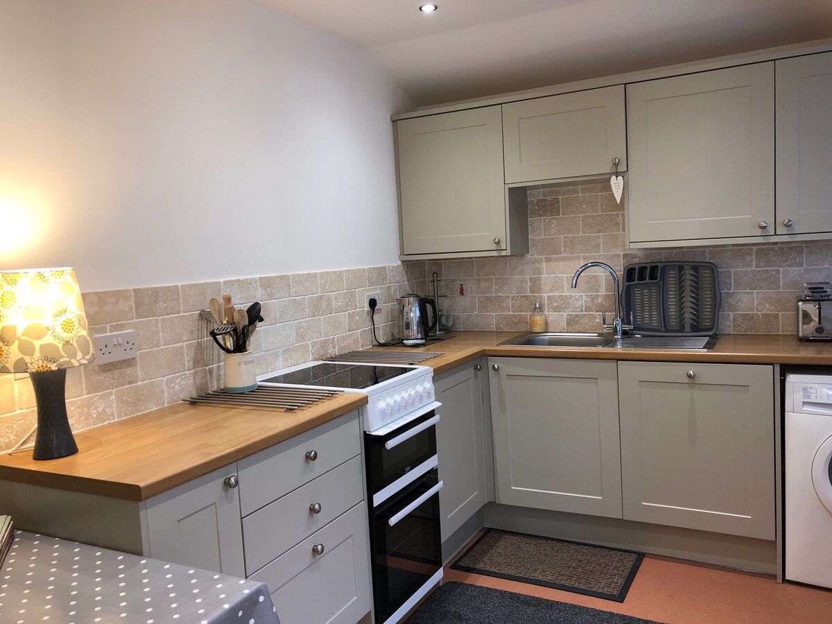 This lovely well equipped flat consists of a lounge with small sofa bed (for a child) kitchen/diner with oven & hob, dishwasher, washing machine, fridge/freezer & dining table. The bedroom has adequate wardrobe and drawer space. The bathroom has a walk in electric shower. There is on-street parking available and a car park 200 meters away. The flat is in the heart of the village and all amenities are within walking distance. ** Please mind your heads on the sloping ceilings.