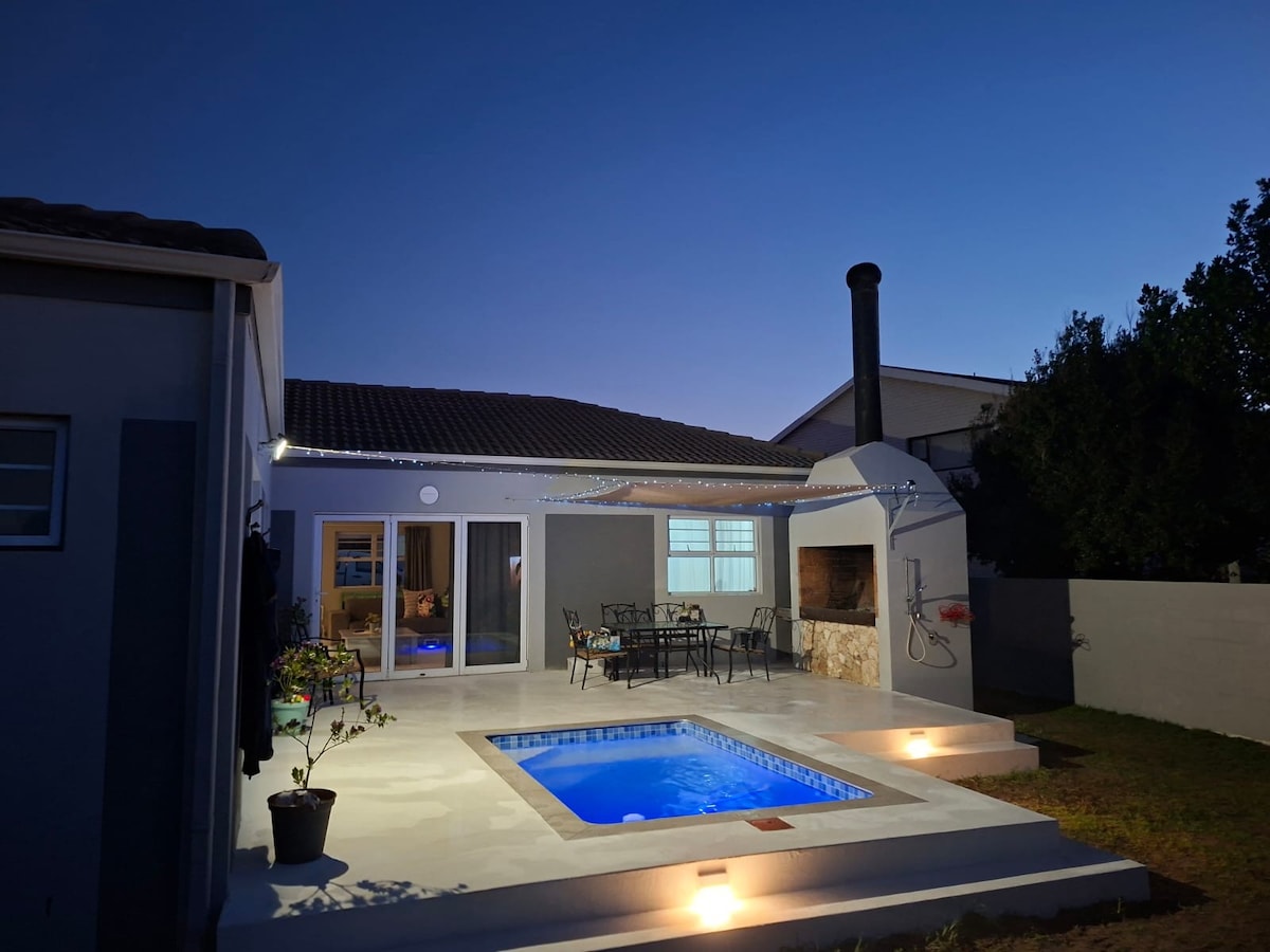 Discover the epitome of coastal charm at our cozy cottage nestled a 5-minute stroll from Langebaan's pristine Main Beach and commercial centre. The cottage welcomes you with a comfortable king-size bed, a private en-suite bathroom and a lounge area and also features a fully equipped kitchen. The in-doors space seamlessly flows out onto a private backyard where memories are made around the "braai" and in the wood-fired hot tub.