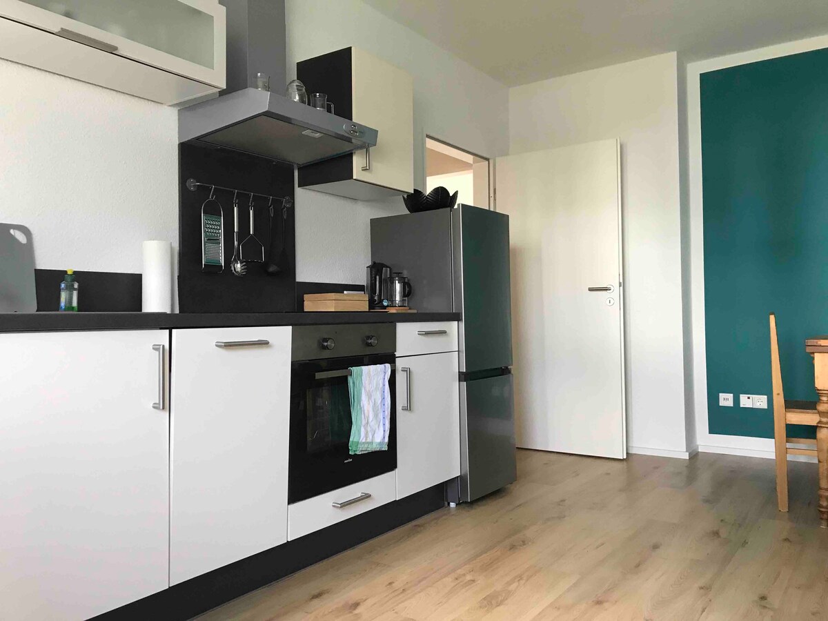 Eine sehr zentral gelegene Einliegerwohnung ca.55 qm, mit separatem Eingang. Die Wohnung hat zwei abschließbare Schlafräume mit elektrischen Aussenrollos, eine offene Wohnküche mit Schlafcouch und ein Badezimmer. Die Küche mit Induktionsherd ist vollständig eingerichtet. Ideal zum kochen, wohnen und entspannen. Auch eine Terrasse ist vom Wohnzimmer ebenerdig angelegt. Parkmöglichkeiten gibt es direkt auf dem eigenen Parkplatz vor dem Eingang. Weitere Parkplätze gibt es entlang der Straße.