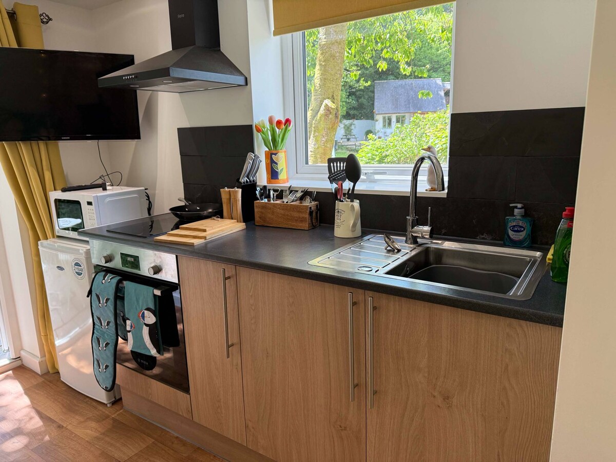 Πιστοποιητικό αριστείας Trip Advisor. Βρίσκεται σε μια ήσυχη δασώδη κοιλάδα στα προάστια της πόλης St Austell. Αυτό το μοντέρνο στούντιο, απαλλαγμένο από καπνό και κατοικίδια, είναι το ιδανικό καταφύγιο διακοπών για 2 άτομα, που θέλουν να ζήσουν την ευχάριστη ακτή της Κορνουάλης. Μετά από μια κουραστική μέρα, πιείτε ένα ποτήρι κρασί, ανοίξτε τις μπαλκονόπορτες, καθίστε έξω στο αίθριο και ΧΑΛΑΡΩΣΤΕ!.... Εξαιρετική τοποθεσία για να εξερευνήσετε όλη την Κορνουάλη. Ιδιωτικό πάρκινγκ εκτός δρόμου για ένα αυτοκίνητο. Φιλικοί, ντόπιοι οικοδεσπότες!