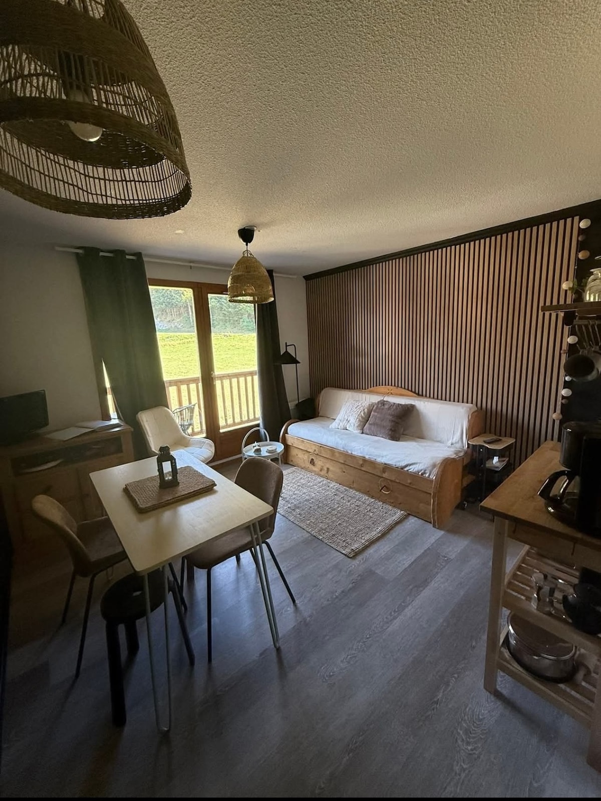 Απολαύστε ένα κομψό κατάλυμα στην καρδιά του χωριού. Πλήρως ανακαινισμένο από διακοσμητή, με ξεχωριστό υπνοδωμάτιο, πολλές αποθηκευτικές δυνατότητες, ξεχωριστό WC, μπάνιο με όμορφη μπανιέρα που ενσωματώνει χώρο ντους 90x90, τραπεζαρία με άνετο παγκάκι. Σε κοντινή απόσταση με τα πόδια (150μ): πίστες, καταστήματα, αρτοποιίας, αθλητικά καταστήματα (ενοικίαση σκι/ποδηλάτων). Ιδανικό για ζευγάρια που αναζητούν ένα άνετο φωλιά για μια ρομαντική διαμονή ή για μια νέα οικογένεια με 1 παιδί (ιδανικό για 2/3 άτομα).
