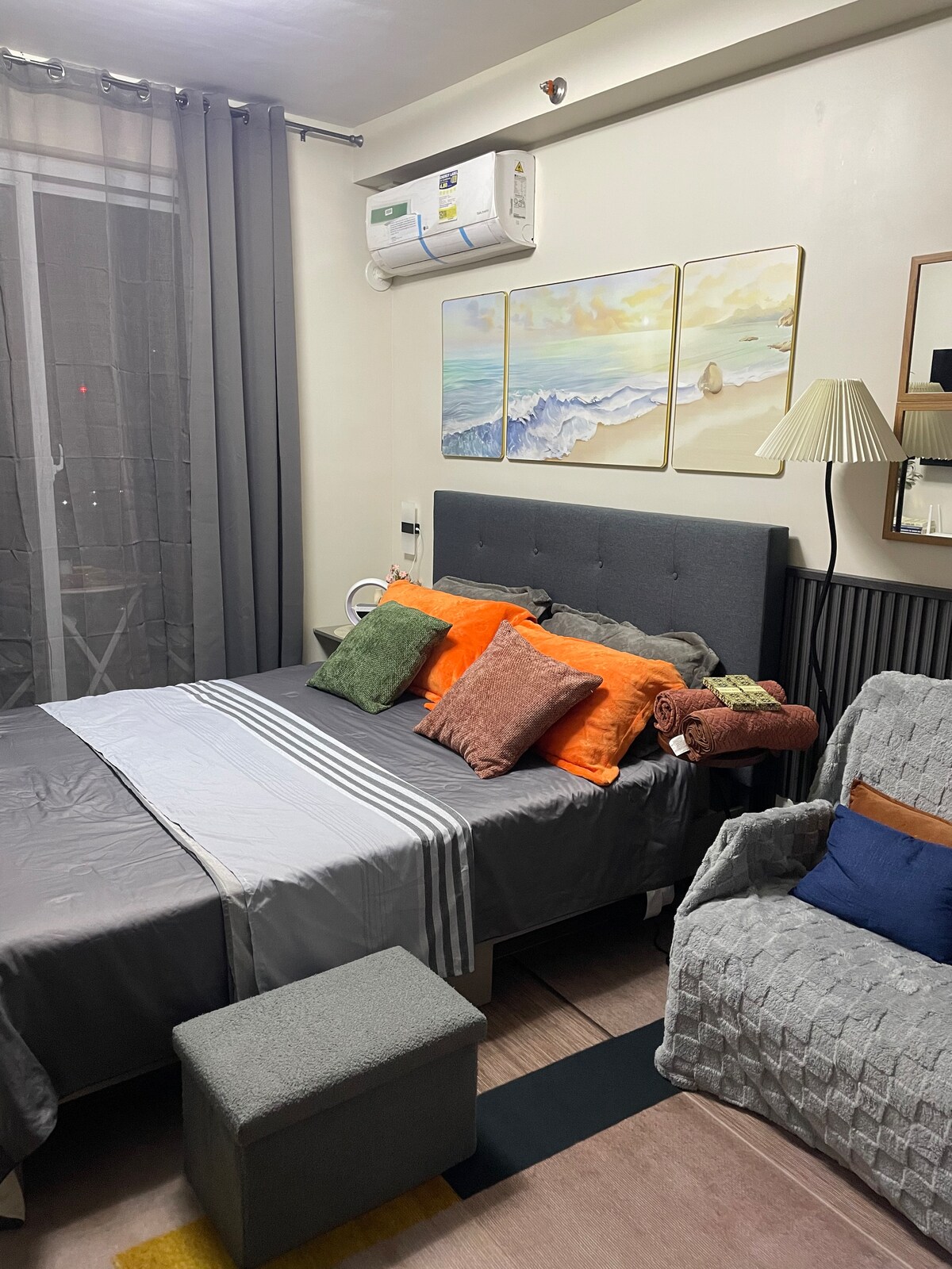 Escape to a cozy, fully furnished 2-bedroom condo in the heart of Cebu City, perfect for families or barkadas of 6-10 people. Relax on the private balcony with stunning views of the city lights, sea, and mountains. Located in a safe, prime neighborhood, enjoy 24/7 security and easy access to major establishments. With modern amenities like AC, a smart TV, a functional kitchen, and parking, our condo offers the perfect mix of comfort, convenience, and style for your group getaway.