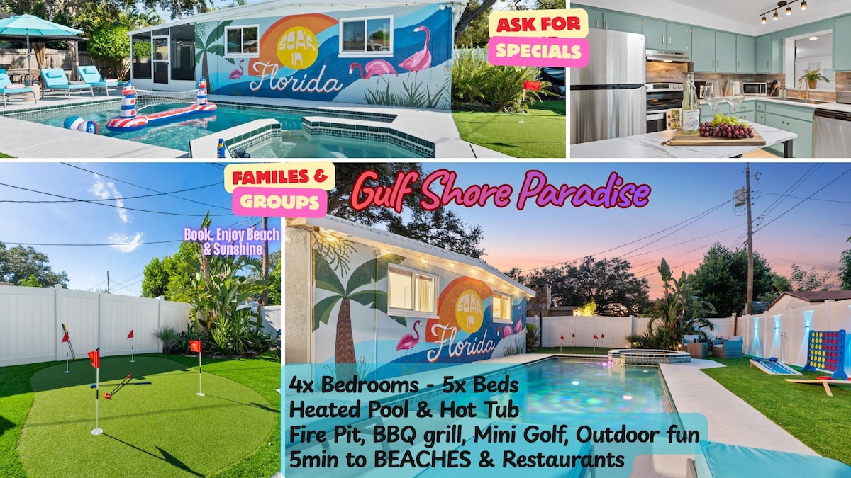 5 min to BEACH! | 4BR w/ Pool, Hot Tub, Mini Golf