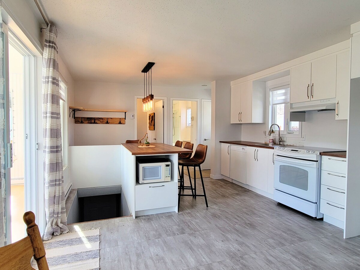 # CITQ 301310 Ce chalet est l'endroit parfait pour se ressourcer et passer du bon temps en famille. Laissez-vous bercer par le son des vagues du Lac-Saint-Jean. Une vue incroyable et un accès direct pour partir à la découverte de ce lac immense vous attendent. Le chalet rénové et moderne vous accueillera pour profiter de vos vacances dans le plaisir et la détente. La propriété est voisine de plusieurs attraits touristiques : Golf, véloroute, plage publique, restaurants, boulangerie, etc.