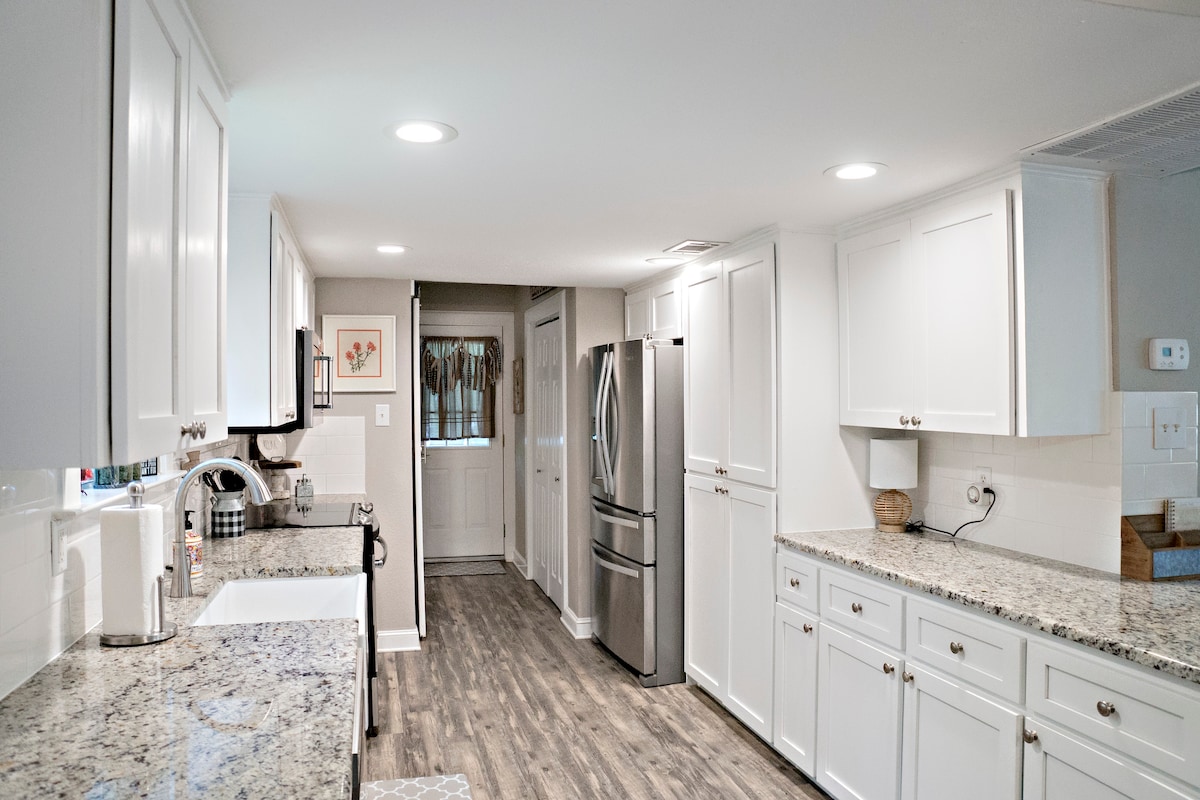 NEWLY PAINTED- new countertops, vanities, fixtures, interior paint, flooring for entire house, furnishings and decor, TVs, board games, and Amazon Alexa, enclosed back patio gates for children & pet safety. NEW dining deck with string lights. Huge fenced backyard area! Beautifully shaded waterfront home. Perfect for swimming…sandy smooth lake bottom and amazing cold pockets that keep you cool on hot days! Enjoy fishing & bring your boat- adventure out on Lake Palestine. Fun family time!!!