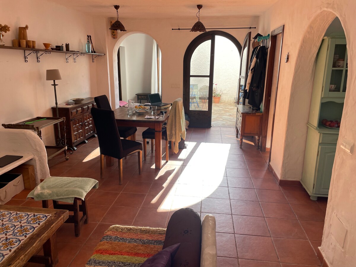Casa con encanto y original, restaurada como nueva, bien iluminada ,en zona calma a sólo 5 minutos caminando de la playa y las comodidades del centro del pueblo de Las Negras, terraza con vista al mar, jardin acogedor protegido del viento, salón espacioso, lavadora exterior, parking cómodo. Casa con todo el confort: aire climatizado, calefacción, mosquiteras, wifi, cafetera, cocina equipada, sábanas y toallas...todo está nuevo (colchones, sofá cama, cocina, ducha, baño, lavadora)