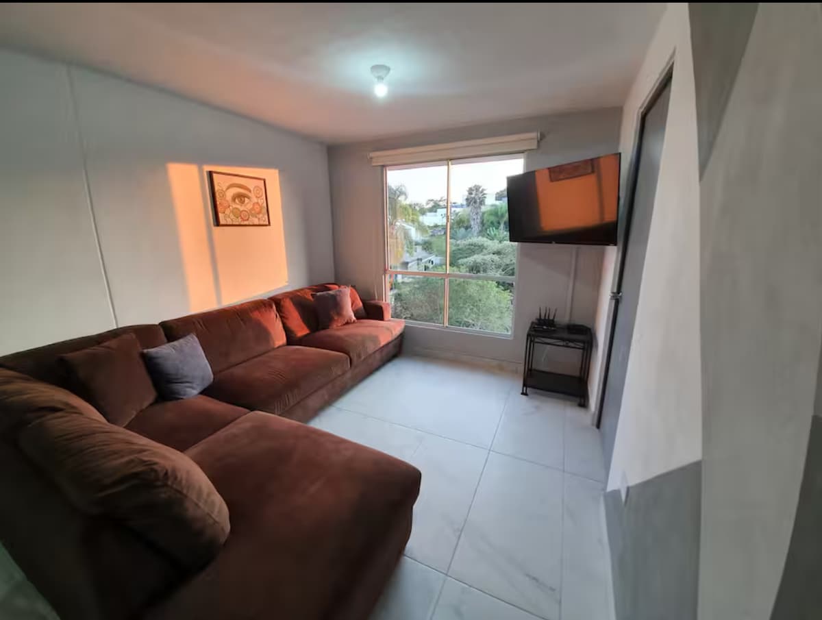 Διαμέρισμα που βρίσκεται στο La Pradera, νότια της πόλης Xalapa Βρισκόμαστε στο -3 λεπτά από την Plaza el Juguete (Chedraui, εστιατόρια, Smart Fit, Padel Club) και το Euro University -10 λεπτά από την Plaza Américas, Monte Magno -15 λεπτά από το κέντρο της Xalapa Το διαμέρισμα διαθέτει δύο υπνοδωμάτια, καναπέ-κρεβάτι, εξοπλισμένη κουζίνα, σαλόνι, τραπεζαρία και τηλεόραση με Amazon Prime και Megacable στο σαλόνι και το υπνοδωμάτιο. Η πρόσβαση στο διαμέρισμα γίνεται με κλειδί, οπότε δεν θα χρειαστεί να ανησυχείτε για την ώρα άφιξής σας