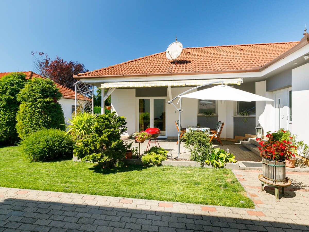 Το μικρό, άνετο εξοχικό μας σπίτι βρίσκεται στην αυθεντική πόλη διακοπών Fövenyes δίπλα στη λίμνη Balaton. Η παραλία απέχει μόλις 300 μέτρα. Μπορείτε να απολαύσετε δύο βεράντες και έναν μεγάλο κήπο. Υπάρχει ένα υπνοδωμάτιο με διπλό κρεβάτι και ένα ευρύχωρο φωτεινό σαλόνι με δύο άνετους καναπέδες-κρεβάτια. Υπάρχουν πολλά πράγματα που μπορείτε να κάνετε, όπως γευσιγνωσία κρασιού, ποδηλασία, πεζοπορία, ιππασία, θαλάσσια σπορ κλπ. Το πιο όμορφο γήπεδο γκολφ της Ουγγαρίας απέχει μόλις 2,6 χιλιόμετρα. Σε απόσταση 300 μέτρων υπάρχει ένας υπαίθριος κινηματογράφος.