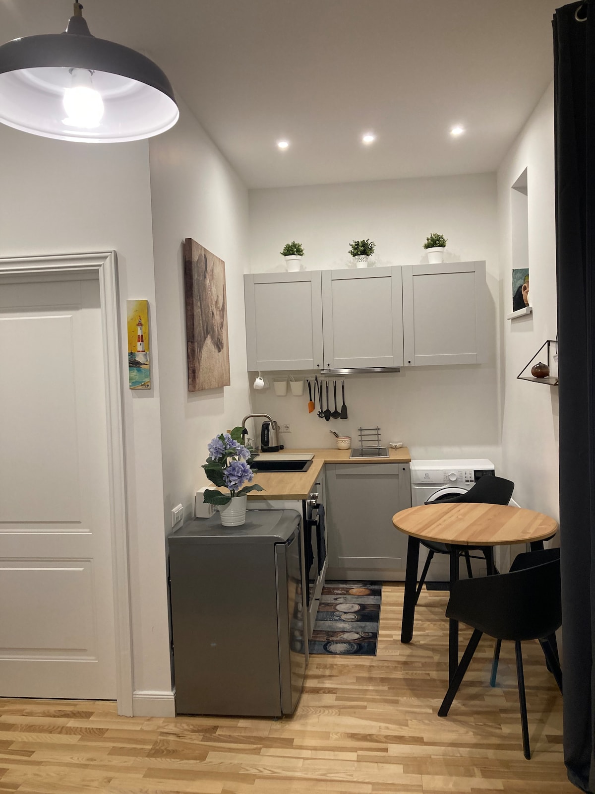 GREAT Location! This charming studio is located in a posh part of Riga city center, right next to many cool shops and a vast selection of restaurants. Fully renovated in 2021, the apartment offers cool design, high speed internet, TV, comfortable bed , professional cleaning. Window open to a quiet courtyard, covering the noise of surrounding streets. Stylish, clean and peaceful. We also offer a FREE GUIDE of Riga that we have prepared specially for our guests. Reach out to get it!