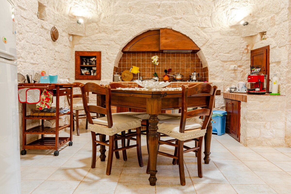 Ένα ανακαινισμένο trullo σε μια ήσυχη τοποθεσία στην ύπαιθρο με αυθεντικό στιλ, τα περισσότερα από τα εσωτερικά είναι ανακυκλωμένα ή παλιά έπιπλα που έχουν ανακαλυφθεί με σύγχρονο-λειτουργικό τρόπο. Διαθέτει 1 υπνοδωμάτιο με διπλό κρεβάτι και 1 καναπέ-κρεβάτι στο σαλόνι. Ένα πρόσφατα ανακαινισμένο μπάνιο με ντους, πλήρως εξοπλισμένη κουζίνα, πλυντήριο ρούχων και πολύ χώρο έξω (μία βεράντα προσβάσιμη από το υπνοδωμάτιο και μία στην άλλη πλευρά με μπάρμπεκιου Η πρόσβαση στην πισίνα είναι κοινόχρηστη με τους επισκέπτες των άλλων 2 ιδιοκτησιών (όχι εξωτερική)