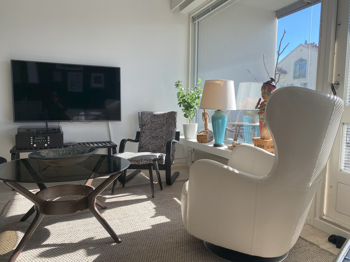 Enjoy seaside location and easy accessibility to public transport from this stylish, bright, clean and comfortable top floor studio. The compact studio has all you need for your stay whether leisure or business. The studio is located by a quiet street in Lauttasaari, around 2,5-3 kilometers from Helsinki city center. Lauttasaari is a peaceful and safe residential area surrounded by sea. You can enjoy great nature yet all services e.g. supermarkets, pharmacy, restaurants, metro are nearby.