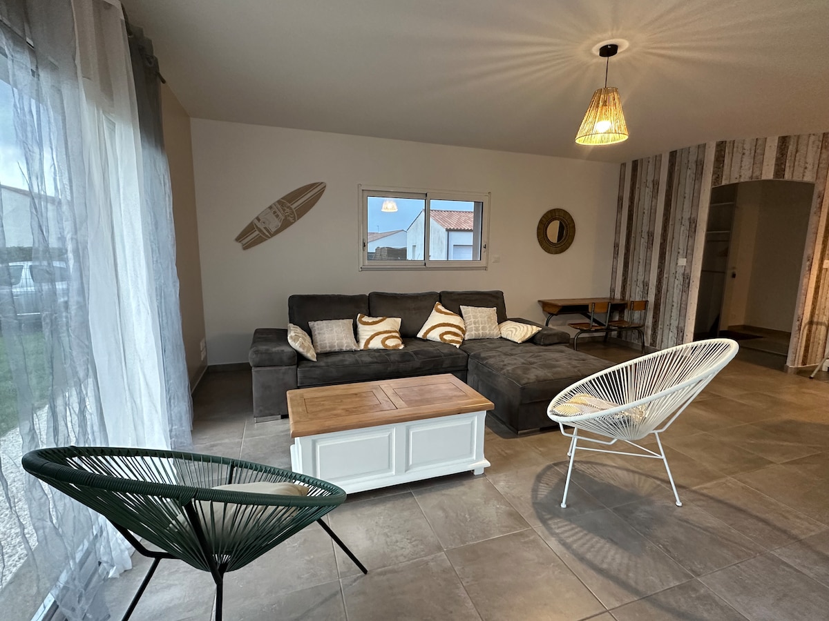 Λιγότερο από δέκα λεπτά από τον ωκεανό, αυτό το σπίτι σάς ανοίγει τις πόρτες του ως μια υπόσχεση γλυκιάς απόλαυσης. Πρόσφατα χτισμένο, λουσμένο στο φως και πλήρως κλιματιζόμενο, έχει σχεδιαστεί με αγάπη, διακοσμημένο με προσοχή, για να φιλοξενήσει απλές στιγμές και υπέροχες αναμνήσεις. Ένας χώρος όπου κάθε λεπτομέρεια αντικατοπτρίζει την επιθυμία για κοινωνικότητα, ομορφιά και ευχαρίστηση. Το Le Bernard είναι ένα μικρό, γαλήνιο χωριό 15 λεπτά από τη La Tranche-sur-Mer και 25 λεπτά από τη Les Sables-d’Olonne.