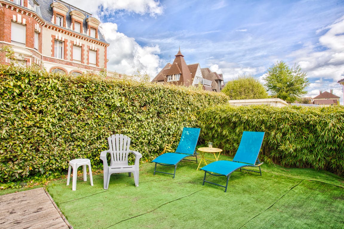 Completely renovated apartment on the 3rd floor (with elevators) at the famous Trouville Palace. 2 Rooms + Mezzanine, with magnificent view of the heights of Trouville, direct access to the surfboards and the beach. Well equipped: oven, microwave, Nespresso, washing machine, dryer, convertible sofa, WiFi. Mezzanine with 2 single beds. Numerous cupboards. Parking space in the building. Household linen (sheet, duvet cover, pillowcase) and towels provided. ⚠️ Non Smoking appartement