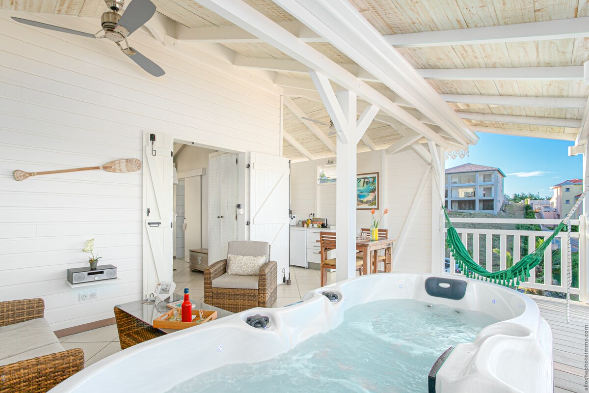 Χαλαρώστε στο σπα ενώ ατενίζετε τη θάλασσα. Αυτό το πολυτελές ξύλινο μπανγκαλόου βρίσκεται στην είσοδο του τουριστικού χωριού Les Trois-Îlets, σε μια ήσυχη, γαλήνια και αεριζόμενη κατοικία, σε έναν τροπικό κήπο, διακοσμημένο σε ένα οικείο και Zen πνεύμα. Το πρωτόκολλο υγείας μας για τη νόσο covid19 διασφαλίζει την ασφάλεια των παραθεριστών μας. Είναι διαθέσιμο κατόπιν αιτήματος. Η τοποθεσία των μπανγκαλόου διασφαλίζει τους κανόνες τήρησης αποστάσεων που είναι απαραίτητοι για την ηρεμία σας. Είναι δυνατή η αυτόνομη πρόσβαση μέσω του κουτιού.