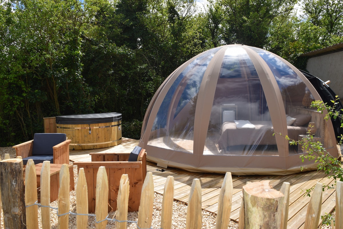 Ιδανικό για να χαλαρώσετε και να απολαύσετε μια ρομαντική στιγμή για να κάνετε φυσαλίδες και να χαλαρώσετε! Ένα πραγματικά άνετο και ρομαντικό κουκούλι με πολύ φυσική διακόσμηση, η φυσαλίδα μας προσφέρει την εγγύηση μιας αξέχαστης νύχτας κάτω από τα αστέρια. Εξαιρετικός σχεδιασμός, σε ένα ήσυχο περιβάλλον, η άνεσή σας είναι εξασφαλισμένη! Το ΤΖΑΚΟΥΖΙ σας σας περιμένει μόλις φτάσετε και όταν ξυπνήσετε θα σερβιριστεί ένα νόστιμο πρωινό. Το μικρό επιπλέον: η θέα στο λιβάδι των αλπακά μας!