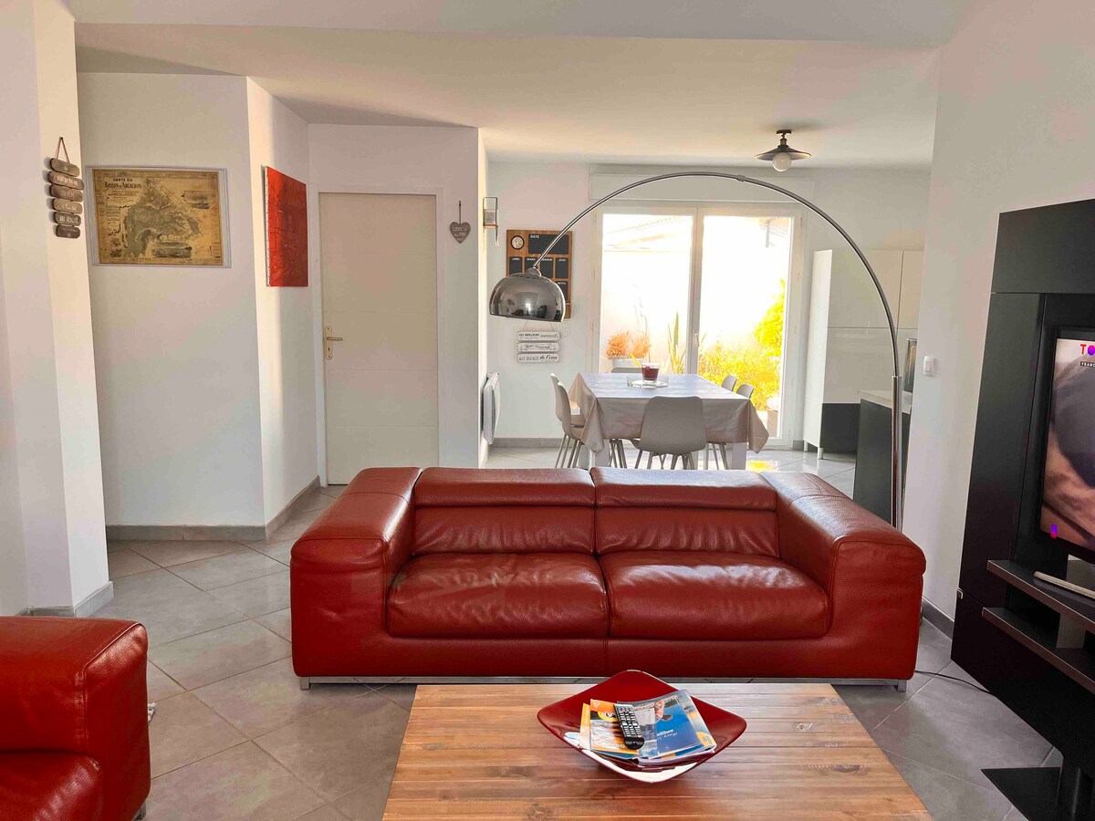 Αυτό το ήσυχο σπίτι προσφέρει μια χαλαρωτική διαμονή για όλη την οικογένεια. - Πλήρως εξοπλισμένη κουζίνα για την προετοιμασία καλών πιάτων. - Θαυμάστε τη φύση και το ηλιοβασίλεμα από τα παράθυρα από το δάπεδο μέχρι την οροφή των υπνοδωματίων του επάνω ορόφου. - Απεριτίφ για οικογένειες ή φίλους στη βεράντα που είναι εξοπλισμένα με έπιπλα κήπου και μπάρμπεκιου σε ένα καταπράσινο περιβάλλον. Εξαιρετική τοποθεσία 5 λεπτά από το λιμάνι του Audenge και 30 λεπτά από το Dune du Pyla. Ποδηλατόδρομος και δρόμος κομποστοποίησης σε κοντινή απόσταση ☀️