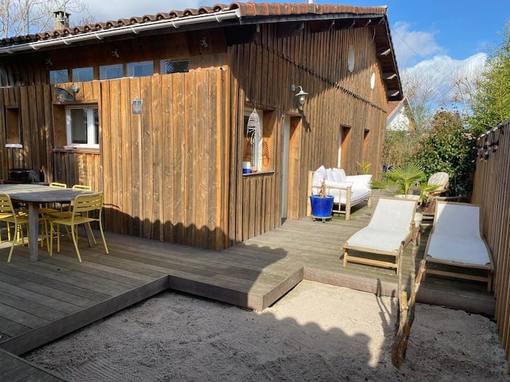 Διαμονή για 2 άτομα 40 τ.μ. κοντά στο κέντρο της πόλης και σε όλες τις παροχές και 4 χιλιόμετρα από το Arcachon. Πλήρως εξοπλισμένη κουζίνα - ανεξάρτητη τουαλέτα - ένα υπνοδωμάτιο με αποθήκη - κρεβάτι 140 - μπάνιο με ντους και μεγάλη λεκάνη και μεγάλη λεκάνη - κήπος - plancha. Το όχημά σας θα είναι ασφαλές, ένας χώρος στάθμευσης στη διάθεσή σας στον κήπο. (Αυτό το σπίτι δεν είναι κατάλληλο για βρέφη, παιδιά και κατοικίδια). Το τζακούζι θα είναι διαθέσιμο από 27 Ιουνίου έως 15 Σεπτεμβρίου 2025.