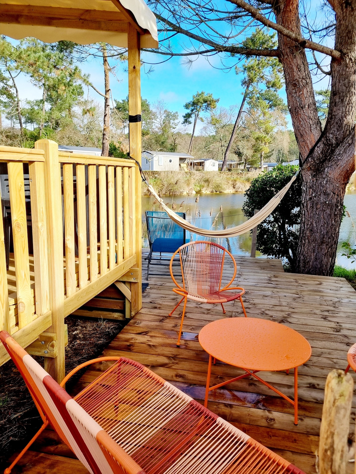 Nice completely new mobile home located in Cap Ferret in Camping**** "Les Viviers". Ένα από τα πιο όμορφα κάμπινγκ που βρίσκεται στο Cap Ferret με θέα στον αμμόλοφο Pilat (άμεση και ιδιωτική παραλία) και λίγα χιλιόμετρα από τον ωκεανό. Το τροχόσπιτο αποτελείται από 3 υπνοδωμάτια 1 κρεβάτι 140*190 και 4 κρεβάτια 80*190, ένα μπάνιο ,ένα σαλόνι και μια κουζίνα με όλο τον απαραίτητο εξοπλισμό. Σκεπαστή βεράντα,χώρος στάθμευσης,μικρός κήπος με θέα στο νερό. Κάμπινγκ με σούπερ μάρκετ, 2 πισίνες