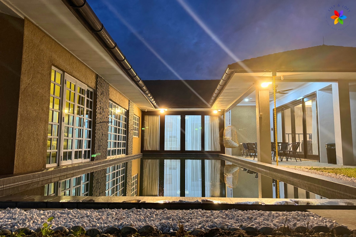 Αποδράστε σε μια ήσυχη οικογενειακή βίλα στο Lenggeng, Negri Sembilan, μόλις μία ώρα από την Κουάλα Λουμπούρ. Αυτή η κομψή βίλα προσφέρει άνεση και πολυτέλεια για αξέχαστες οικογενειακές συγκεντρώσεις. Διαθέτει τέσσερα ευρύχωρα υπνοδωμάτια με ένα διπλό κρεβάτι, ένα διπλό κρεβάτι, κλιματισμό και ενσωματωμένα μπάνια. Απολαύστε άμεση πρόσβαση σε μια εκπληκτική πισίνα, μια μεγάλη τραπεζαρία, μια πλήρως εξοπλισμένη κουζίνα, ένα ευρύχωρο σαλόνι με τηλεόραση και μπιλιάρδο. Περιτριγυρισμένο από ένα γαλήνιο χωριό, είναι ιδανικό για οικογενειακούς δεσμούς.