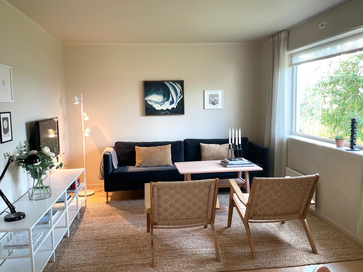 Nydelig leilighet med utsikt og gratis parkering.