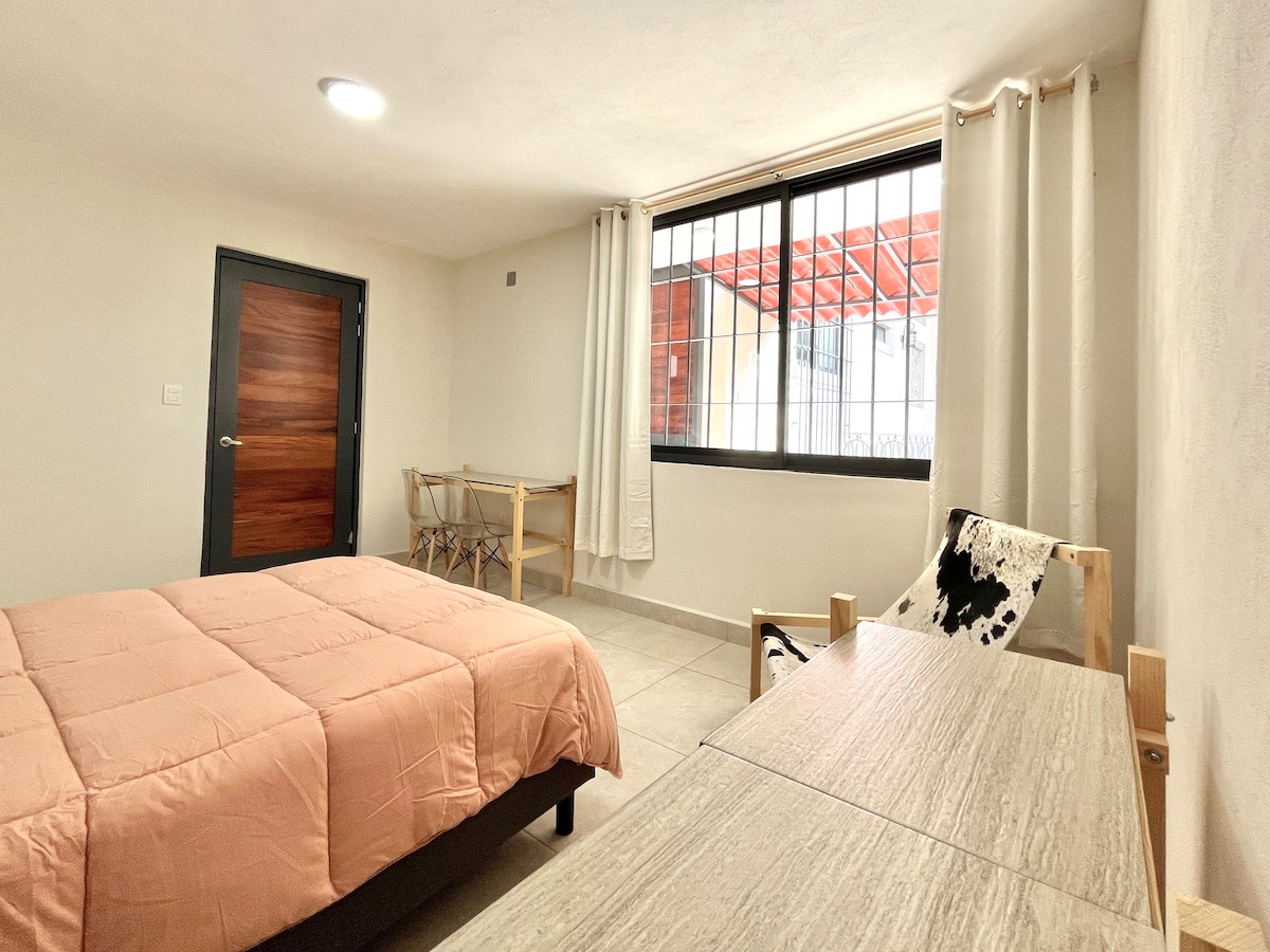 Departamento tipo loft totalmente equipado para gozar de una estadía realmente placentera y como en casa, diseño muy original y acogedor, una amplia terraza para tomar el sol y tener una rica tarde, ubicada cerca de cines, súper,farmacia y tienda de abarrotes frente al departamento, una zona tranquila de la ciudad, el lugar ideal para tener horas de descanso y/o trabajar sin el bullicio de estar en medio de la ciudad.
