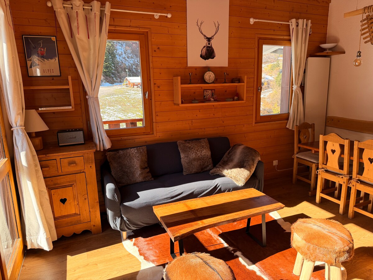 ΘΕΡΑΠΕΙΑ ΤΙΜΗΣ 2025 € 950/21 διανυκτερεύσεις Διαβάστε προσεκτικά τα ΣΧΕΔΙΑ - περιγραφή της γειτονιάς για πρόσβαση στον σταθμό. Με υπέροχη θέα στο Grand Bec, μια κορυφή 3.398 μέτρων πάνω από την επιφάνεια της θάλασσας, αυτό το πολύ φωτεινό και πλήρως επιπλωμένο διαμέρισμα μπορεί να φιλοξενήσει μέχρι 4 άτομα. Βρίσκεται στο επάνω επίπεδο του σαλέ και διαθέτει ένα υπνοδωμάτιο με ένα διπλό κρεβάτι ή δύο μονά κρεβάτια. Στο σαλόνι θα βρείτε επίσης έναν καναπέ-κρεβάτι (μέγεθος 120x200). 1 σκύλος γίνεται δεκτός υπό όρους (5 €/ημέρα). Δεν γίνονται δεκτές γάτες.