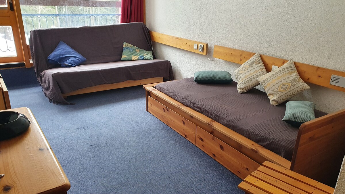 Ανακαινισμένο στούντιο 17m2, ιδανικό για 2 άτομα, αλλά μπορεί να φιλοξενήσει 4 άτομα Διαθέτει 4 κρεβάτια, έναν διπλό καναπέ-κρεβάτι στο σαλόνι και 2 πτυσσόμενα κρεβάτια στην είσοδο Σε 2 λεπτά με τα πόδια από τους ανελκυστήρες (150μ) και κοντά σε όλα τα καταστήματα, μια στάση των δωρεάν λεωφορείων είναι ακριβώς κάτω από το κατάλυμα Το διαμέρισμα διαθέτει πλυντήριο πιάτων, καφετιέρα, τοστιέρα και βραστήρα, καθώς και χώρο για τα πέδιλα του σκι Συμπεριλαμβάνονται σεντόνια, πετσέτες και καθαρισμός Δωρεάν Wi-Fi