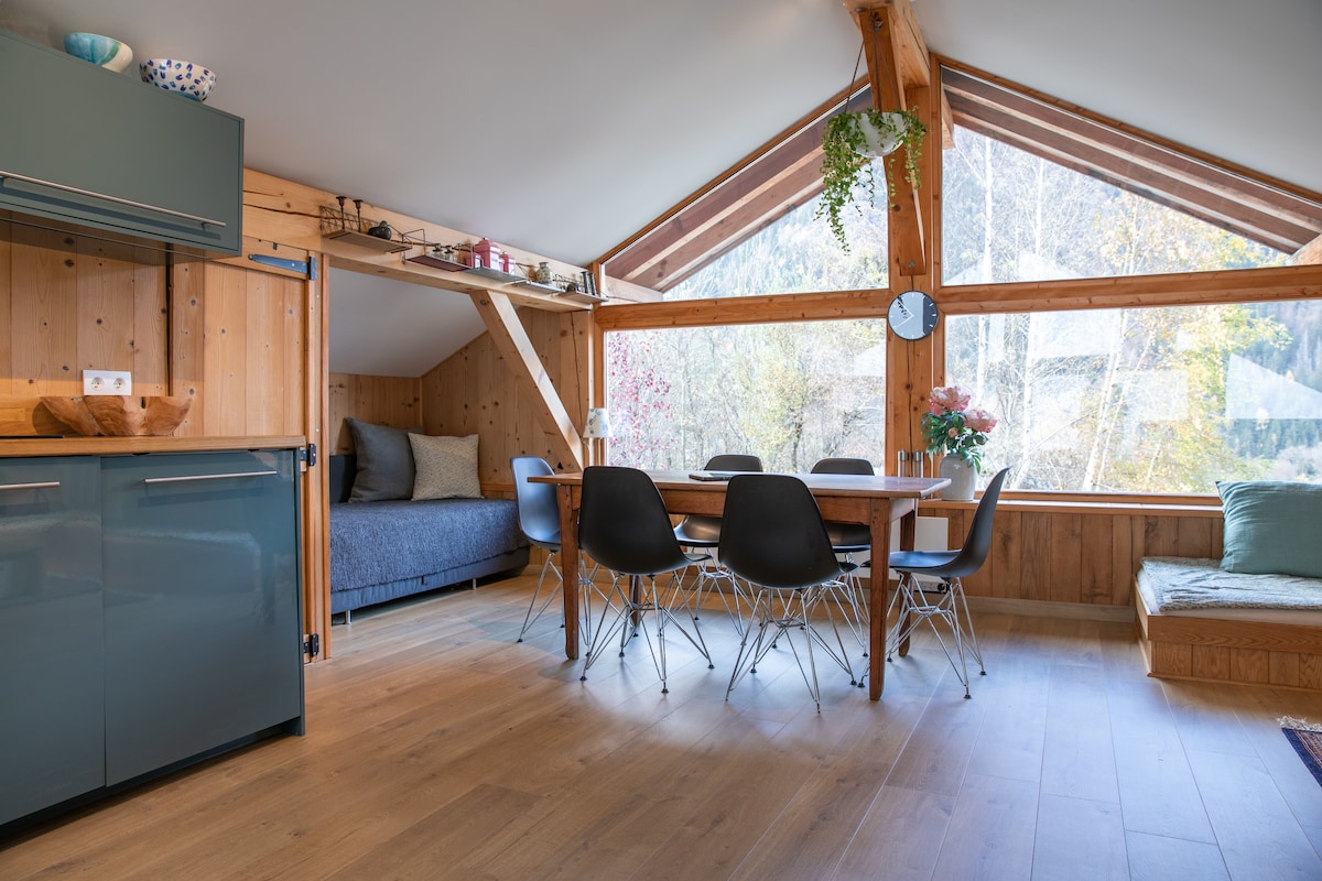 Το ανεξάρτητο διαμέρισμά σας σε ένα ορεινό σαλέ στην αρχή των χιονοδρομικών πιστών του Brévent και πολλών πεζοποριών. Γοητευτικό περιβάλλον, θέα στο Λευκό Όρος, που βρίσκεται σε απόσταση 5 λεπτών με τα πόδια από το κέντρο του Chamonix. Κοντά σε καταστήματα, μπαρ και εστιατόρια. Εξοπλισμένη κουζίνα, μπάνιο και ξεχωριστές τουαλέτες. 2 μονά κρεβάτια με διπλό πάπλωμα + μονό πάπλωμα, εάν χρειάζεται. Δωρεάν πάρκινγκ μπροστά από το σαλέ για 1 αυτοκίνητο από την 1η Δεκεμβρίου 2024! Καλώς ήρθατε στο σπίτι σας στο Les Terrasses du Brévent!