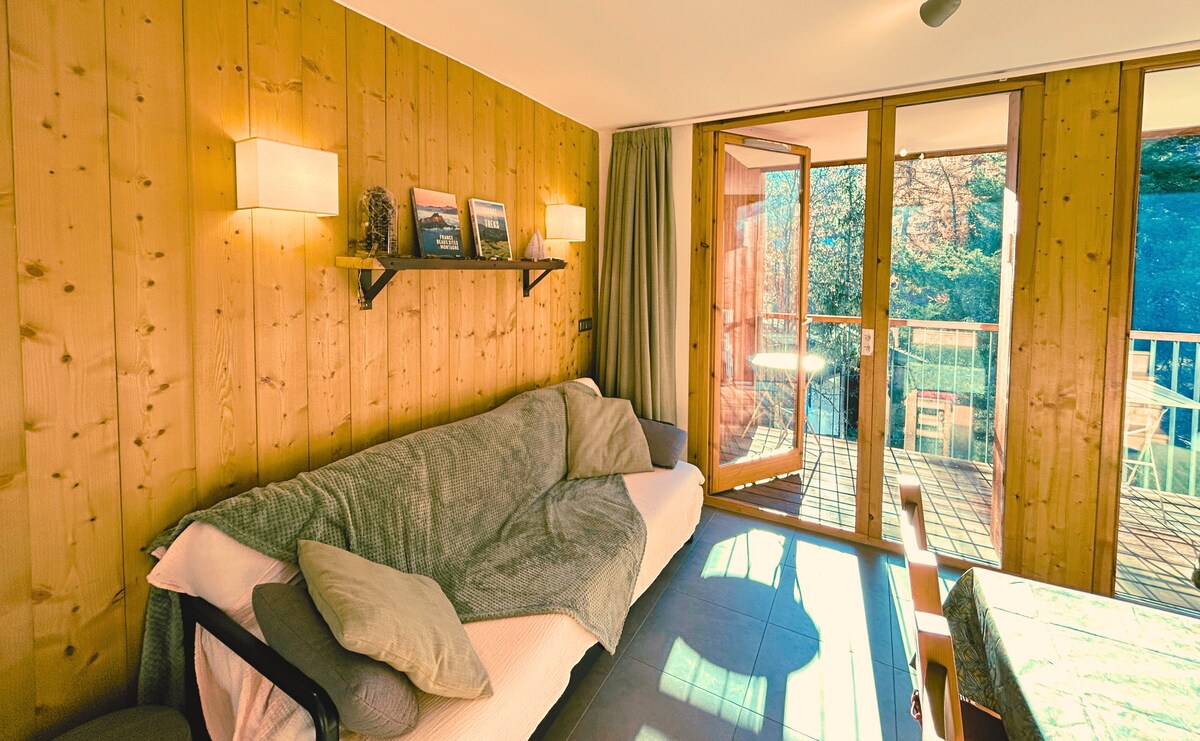 Διαμέρισμα 2 p 34τ.μ. που βρίσκεται στον 1ο όροφο. N°104 με μπαλκόνι και θέα στο βουνό. Η ΚΑΤΟΙΚΊΑ βρίσκεται κοντά στην πώληση πακέτων και καταστημάτων κατά μήκος του δάσους. 2 υπνοδωμάτια, σαλόνι με 1 καναπέ-κρεβάτι 160x220, τηλεόραση, μικρή κουζίνα που αποτελείται από 1 φούρνο μικροκυμάτων, 1 πλυντήριο πιάτων, ηλεκτρική κουζίνα, 1 ψυγείο, ηλεκτρικό βραστήρα, καφετιέρα φίλτρου, καφετιέρα Nespresso, τοστιέρα, πλυντήριο ρούχων. Χρηματοκιβώτιο με κλειδί που συνδέεται με την πόρτα. Δεν επιτρέπεται το κάπνισμα στο διαμέρισμα/Δεν επιτρέπονται τα κατοικίδια
