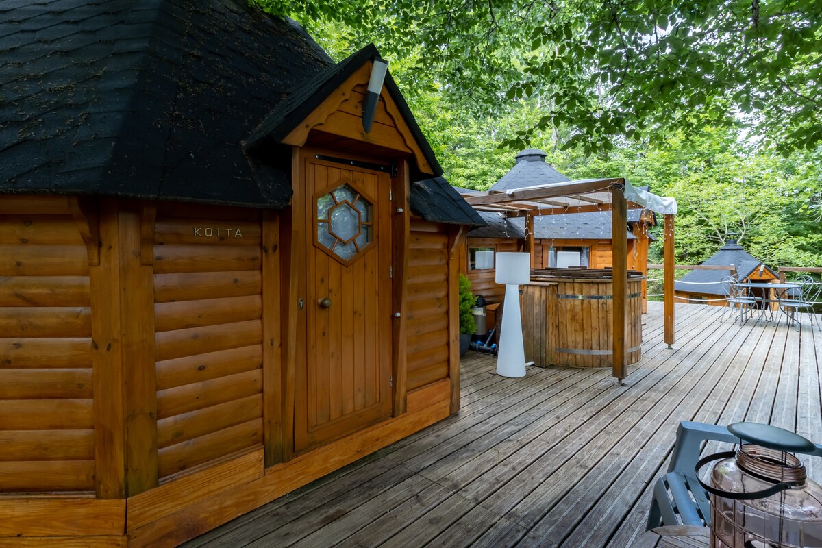Κτήμα "Rêve en Périgord" (Όνειρο στο Περιγκόρ). Στην καρδιά του Périgord Noir, ένα γοητευτικό, ασυνήθιστο, κυκλικό ξυλόσπιτο, με τον τρούλο του για να θαυμάζετε τον ουρανό, το ιδιωτικό του σπα, προστατευμένο, θερμαινόμενο στους 38° και σε λειτουργία όλο το χρόνο! Κλιματισμός και θέρμανση. Απολαύστε την εκπληκτική θέα από τον καναπέ σας, το τζακούζι και τη βεράντα στο Château des Milandes (Joséphine Baker), το Château Fort de Beynac και την κοιλάδα της Dordogne. Μια μικρή γωνιά του παραδείσου κρεμασμένη ψηλά, θα έχετε θέα στην "Κοιλάδα των 5 κάστρων".
