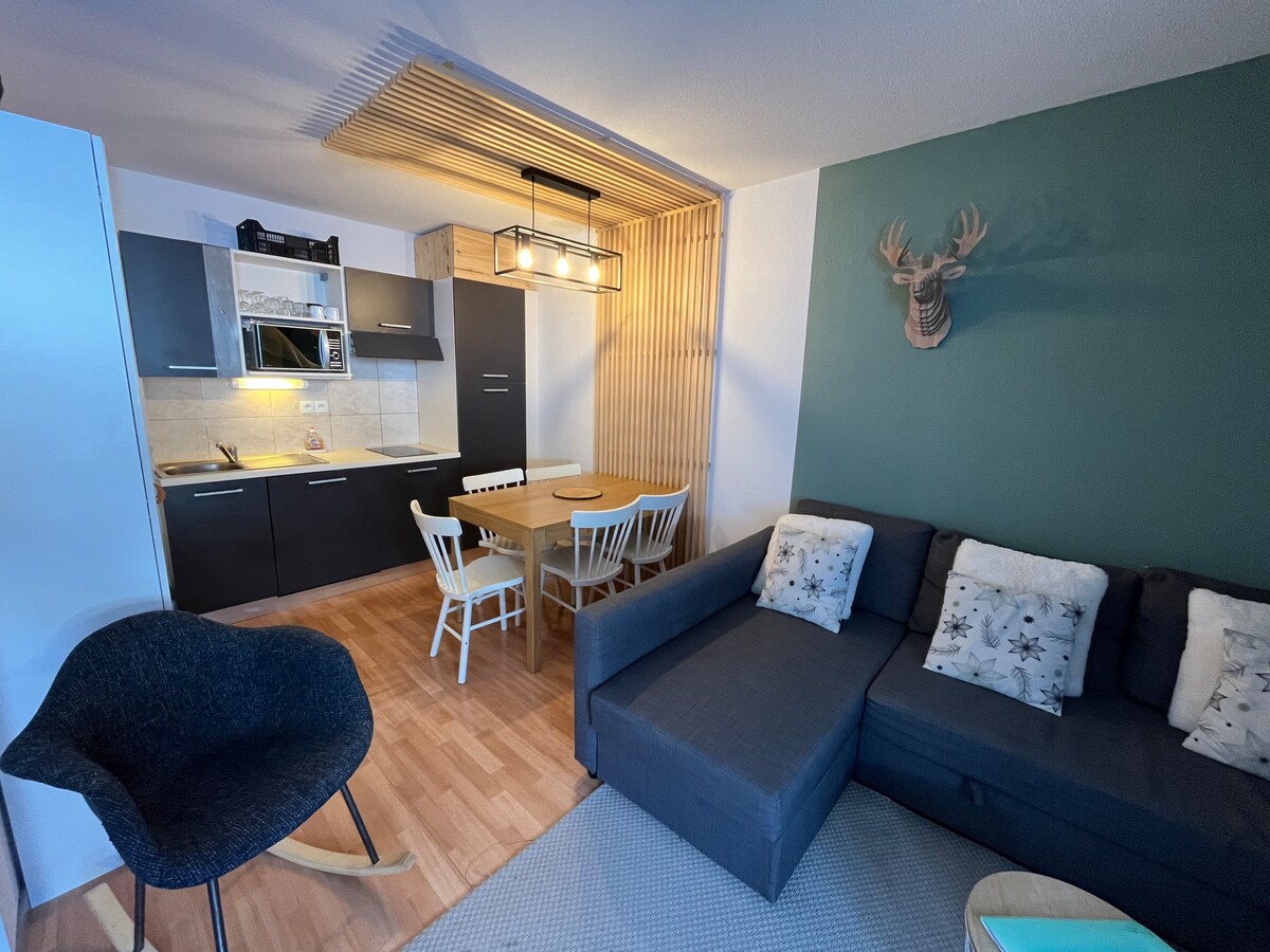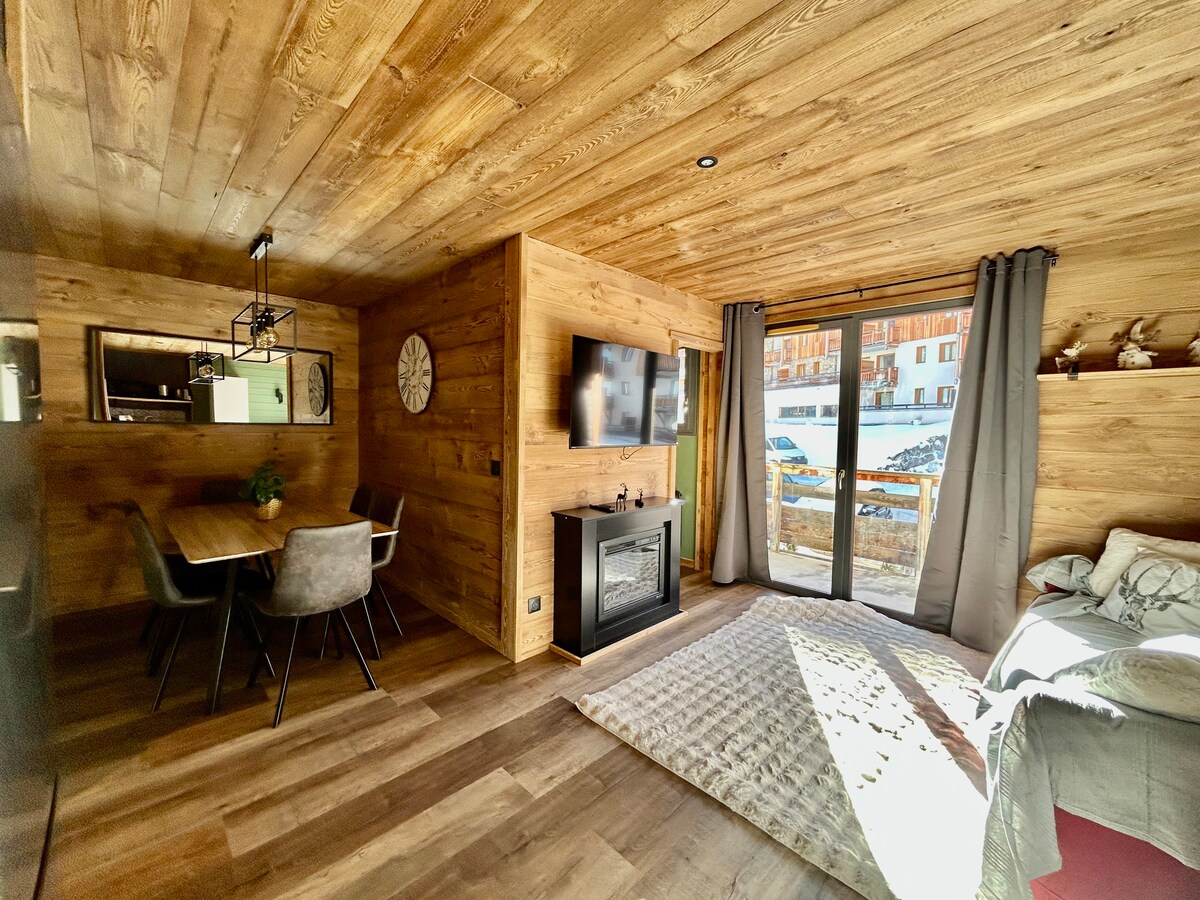🏔️ Κατοικία Les Terrasses du Soleil d 'Or** * - SKI-IN/SKI-OUT - Στούντιο 4 άτομα - 24 τ.μ. - Θερμαινόμενη εσωτερική πισίνα - 1ος όροφος με ασανσέρ-Les Orres 1800 Bois Méan Άνετο κατάλυμα, πολύ άνετο, κατάλληλο για οικογένειες, λειτουργικό και σε βολική τοποθεσία. Όλα τα καταστήματα κοντά - 50 μέτρα από το ESF, πώληση πακέτων και τελεφερίκ. ⛷️❄️ Στο πρόγραμμα: σκι, έλκηθρο, ζεστή σοκολάτα, γέλιο με συγγενείς ή φίλους, υπέροχα πανοράματα, χαλάρωση στην πισίνα και πάρτι με ρακλέτ 😉